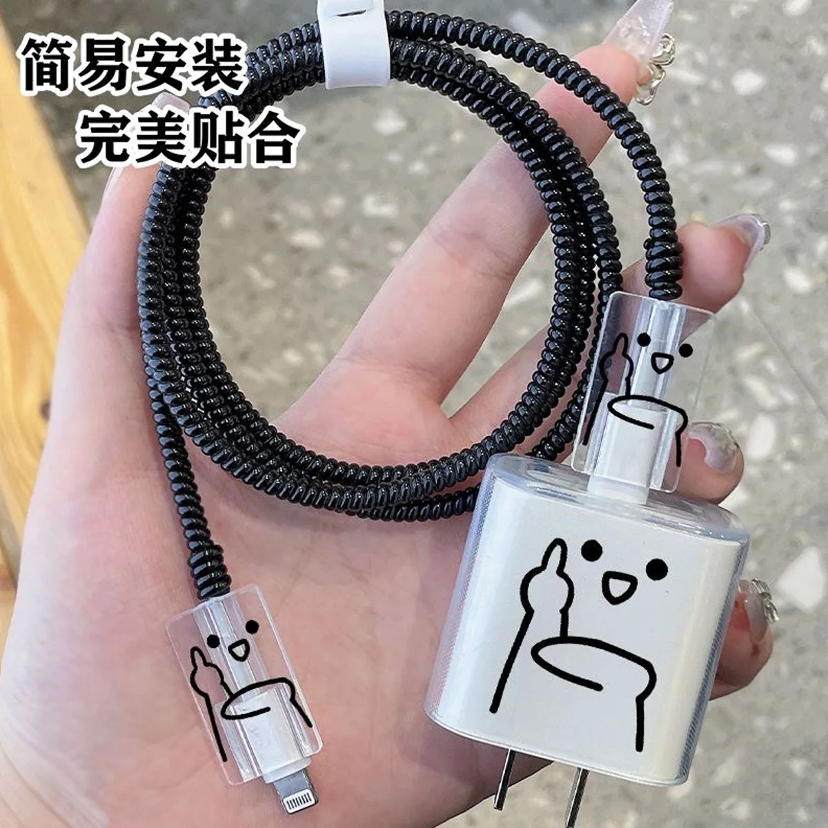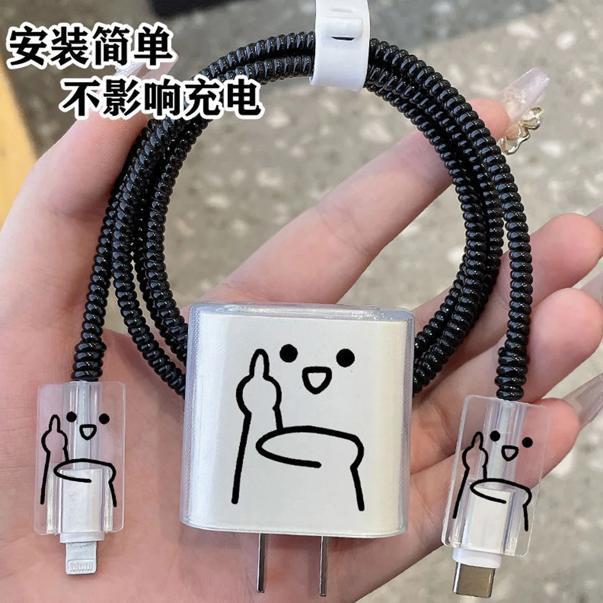 Creative Line Case for iPhone 16 15 14 13 Pro Max 18/20W Charger Charging Protector Data Wire Winder Cover Prevent Breakage
