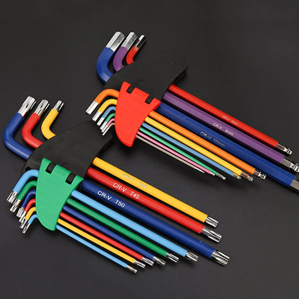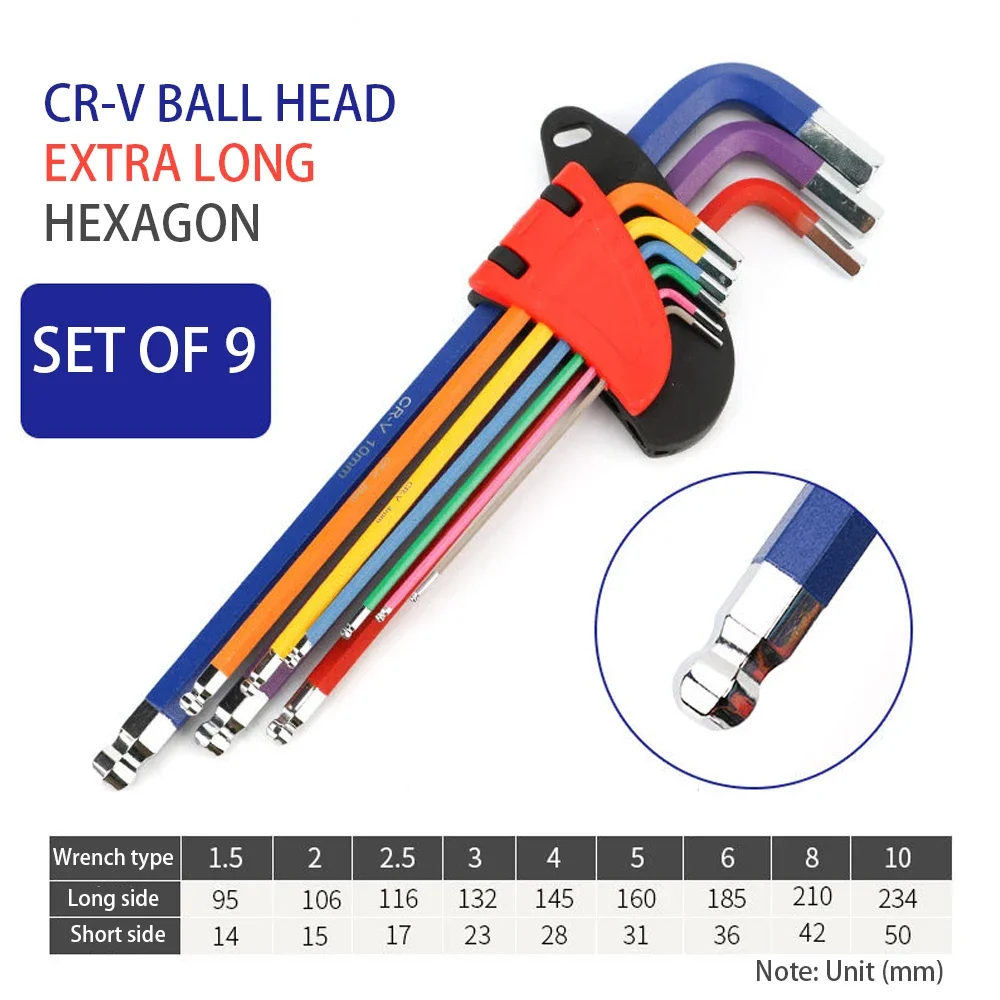 9Pcs S2 Alloy Steel Hex Key Allen Wrench Hand Tool 1.5/2/2.5/3/4/5/6/8/10mm Quick Snap Adapter Tool Ball Head/Plum Blossom Head