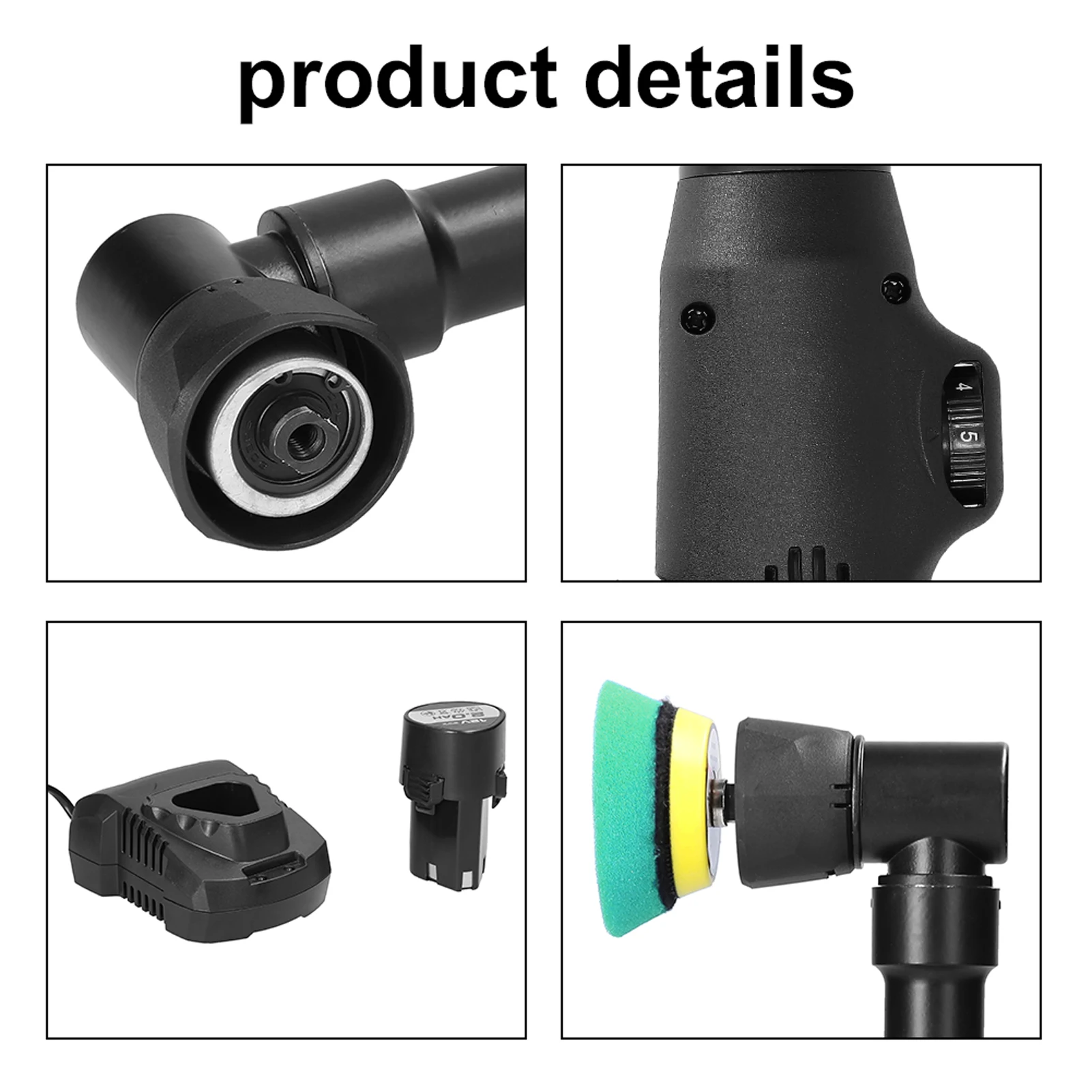 Each product comes with two batteries and a power cable for battery. These two battery packs allows you to use one of them in the tool and c-harge the other, so you don't have to worry about the battery running out of power. At the same time, the cordless polishing machine also solves the problem of plugging in, even if it is out of the door.