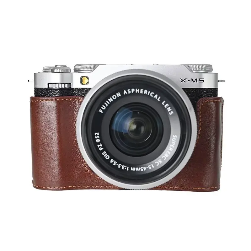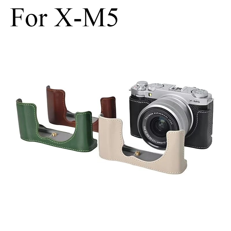 Genuine Leather Half Case for Fujifilm X-M5 Camera Non-slip Camera Protective Case Base Mount Hand Grip XM5 Accessories