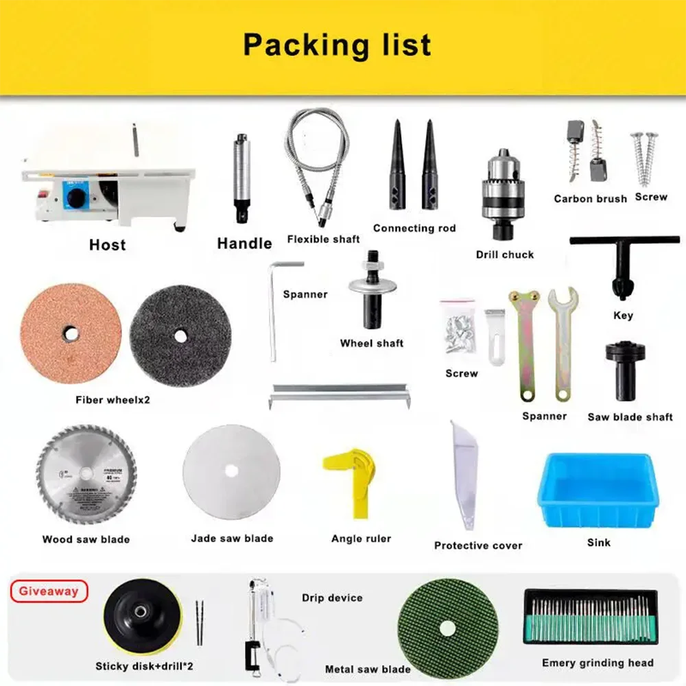 【Fully Functional】With water sand polishing,stone cutting,grinding wheel polishing,wood products punching,wood cutting,metal cutting and polishing.