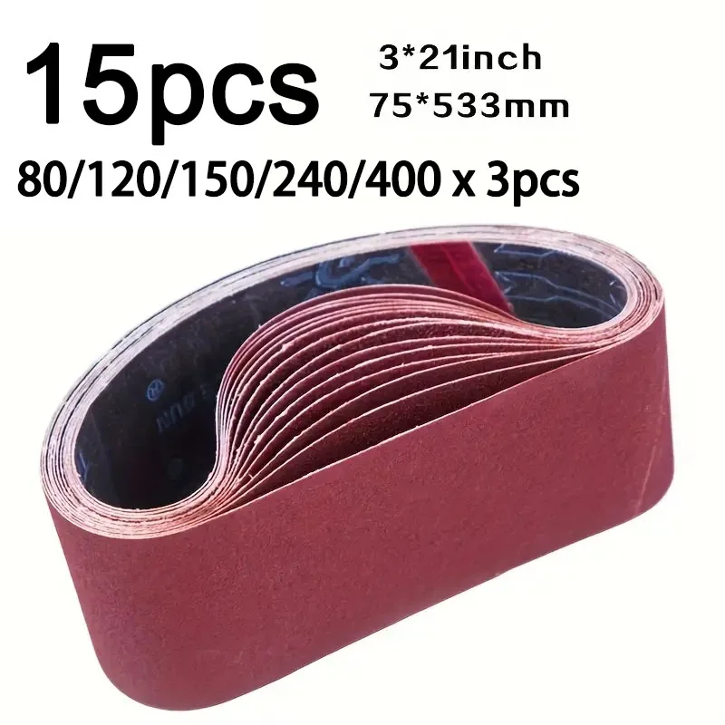 15pcs 3x21(75x533) Inch Sanding Belt Sanding Paper Suitable For Sanding Machine Grinding Woodworking Metal Polishing