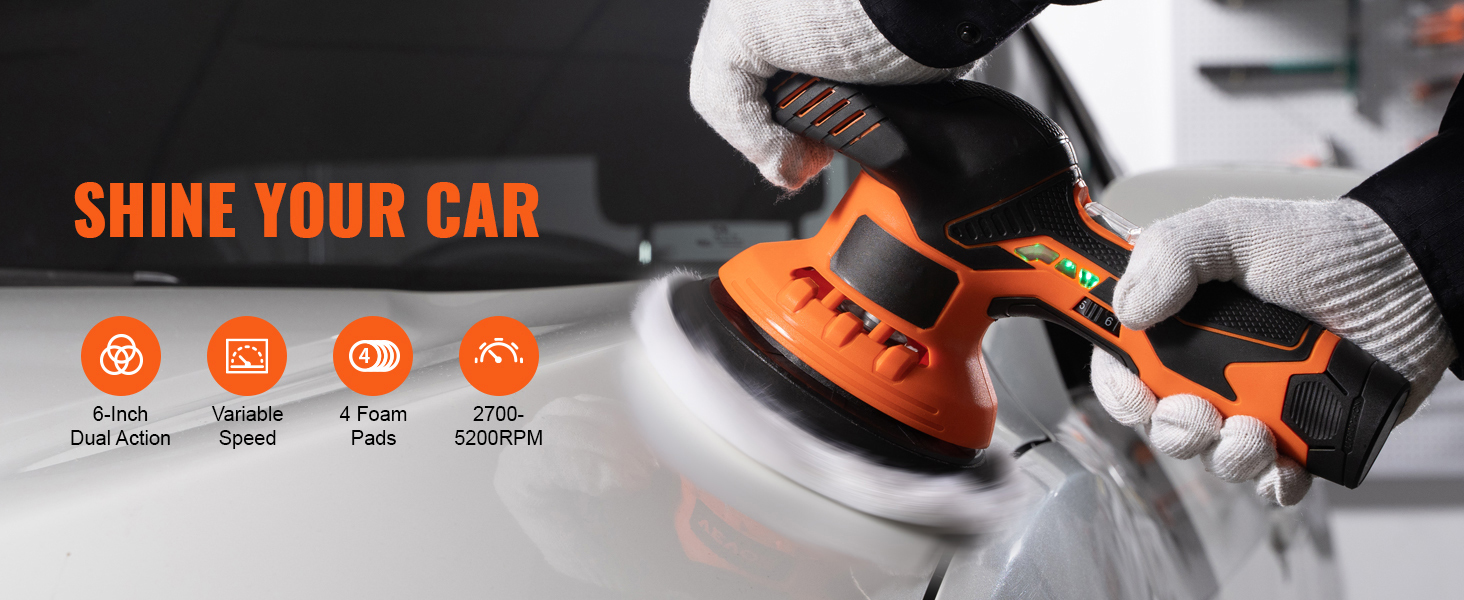 Speed is On Your Side: Take control of your car polisher with the 6-level speed control! Ranging from 2700 to 5200 RPM, you have the flexibility to adjust the buffing machine according to your needs. Whether it's the low speed for gentle waxing and buffing, medium speed for thorough polishing and cleaning, or high speed for removing stubborn defects and oxidation, this orbital polisher has you covered.