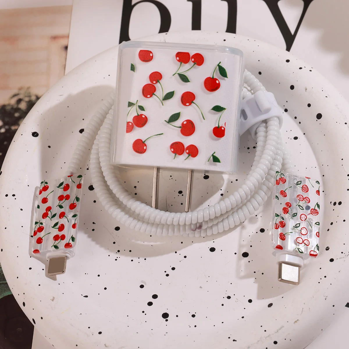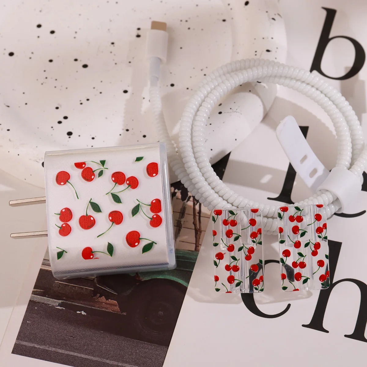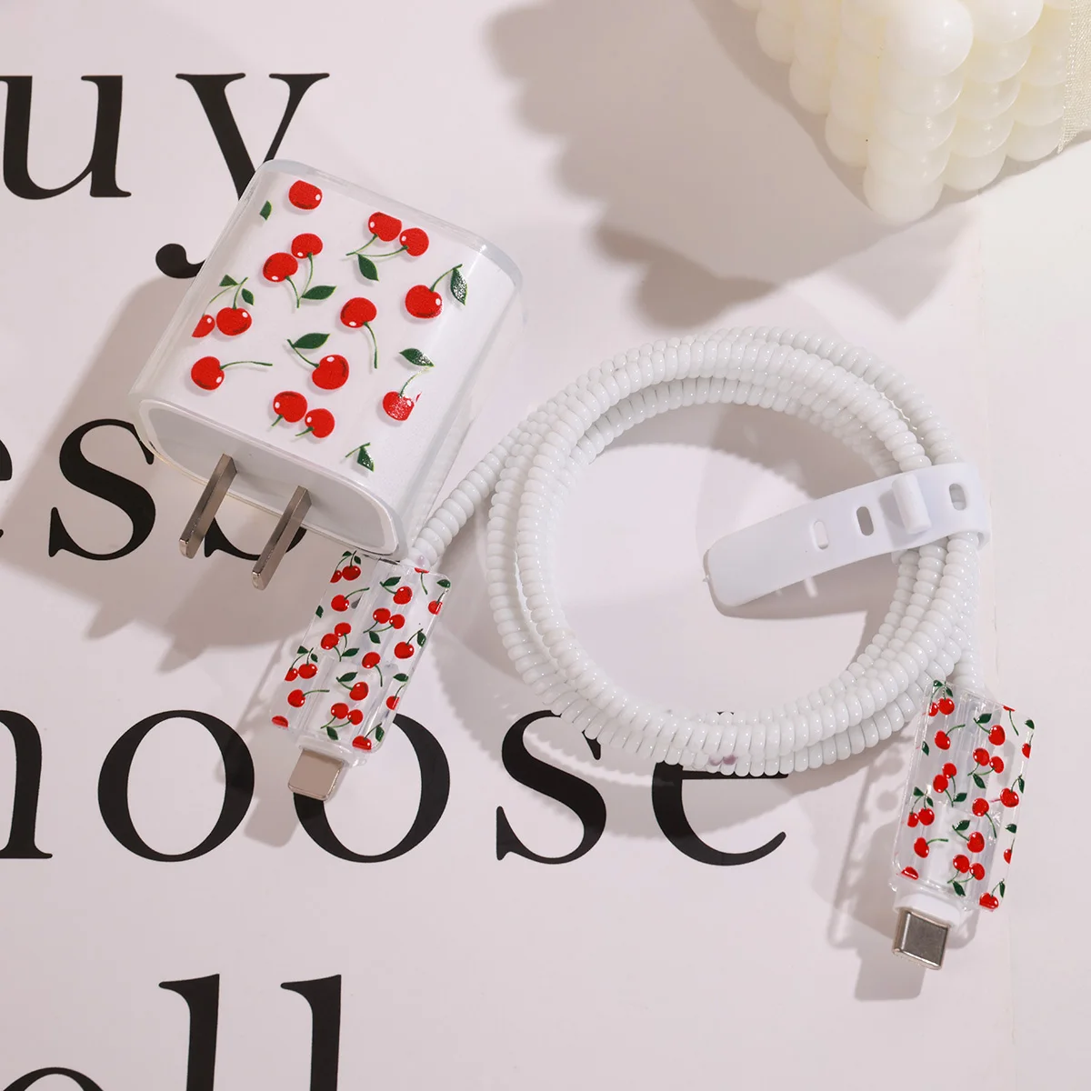 Cute Cherry Charger Protective Case For iPhone 18W/20W Fast Charging Cable Data Anti-break Charger Protective Rope Shell