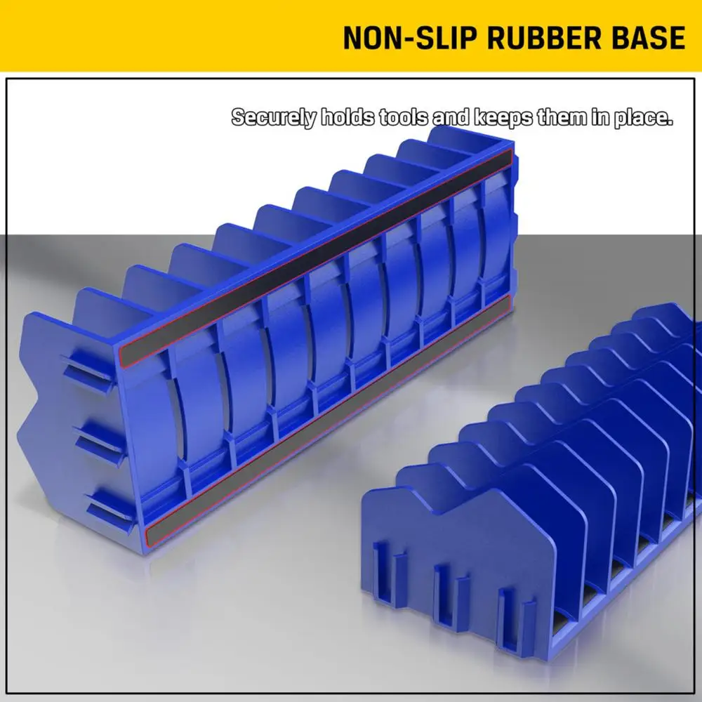 The modular design with high-quality ABS material and a non-slip rubber base saves space while fitting most common hand tools like pliers and cutters.