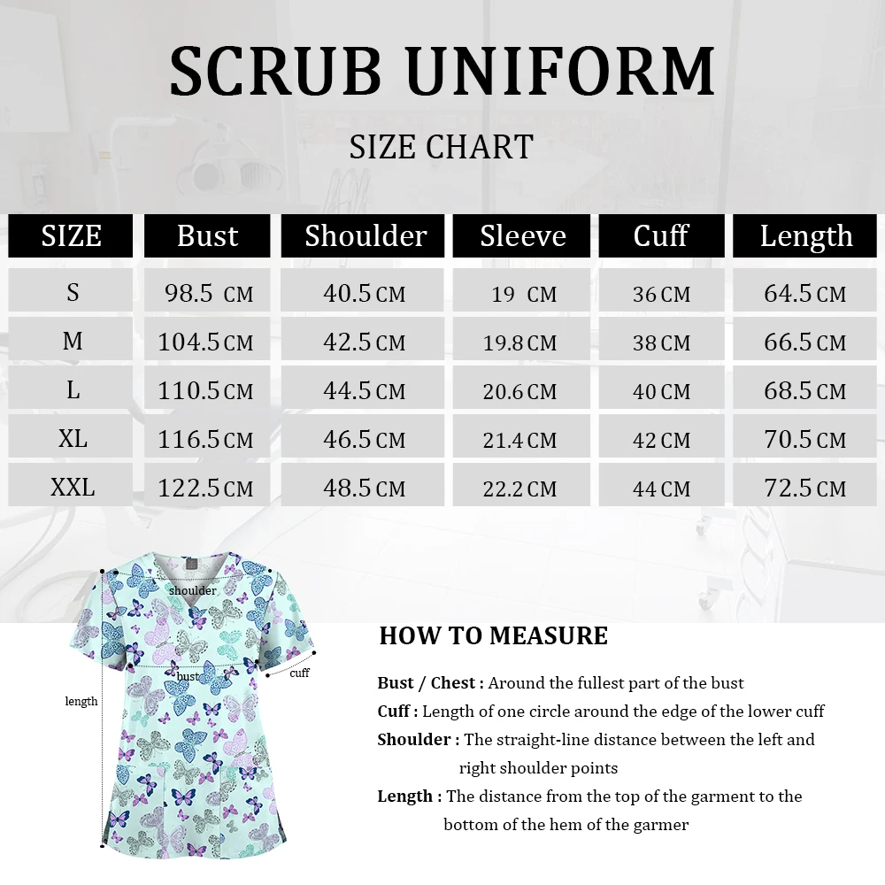 Wholesale Polyester Spandex Uniforms Beautiful Hospital Scrubs Tops Women Nurse Printed Scrub Top Healthcare Nursing Scrub Shirt