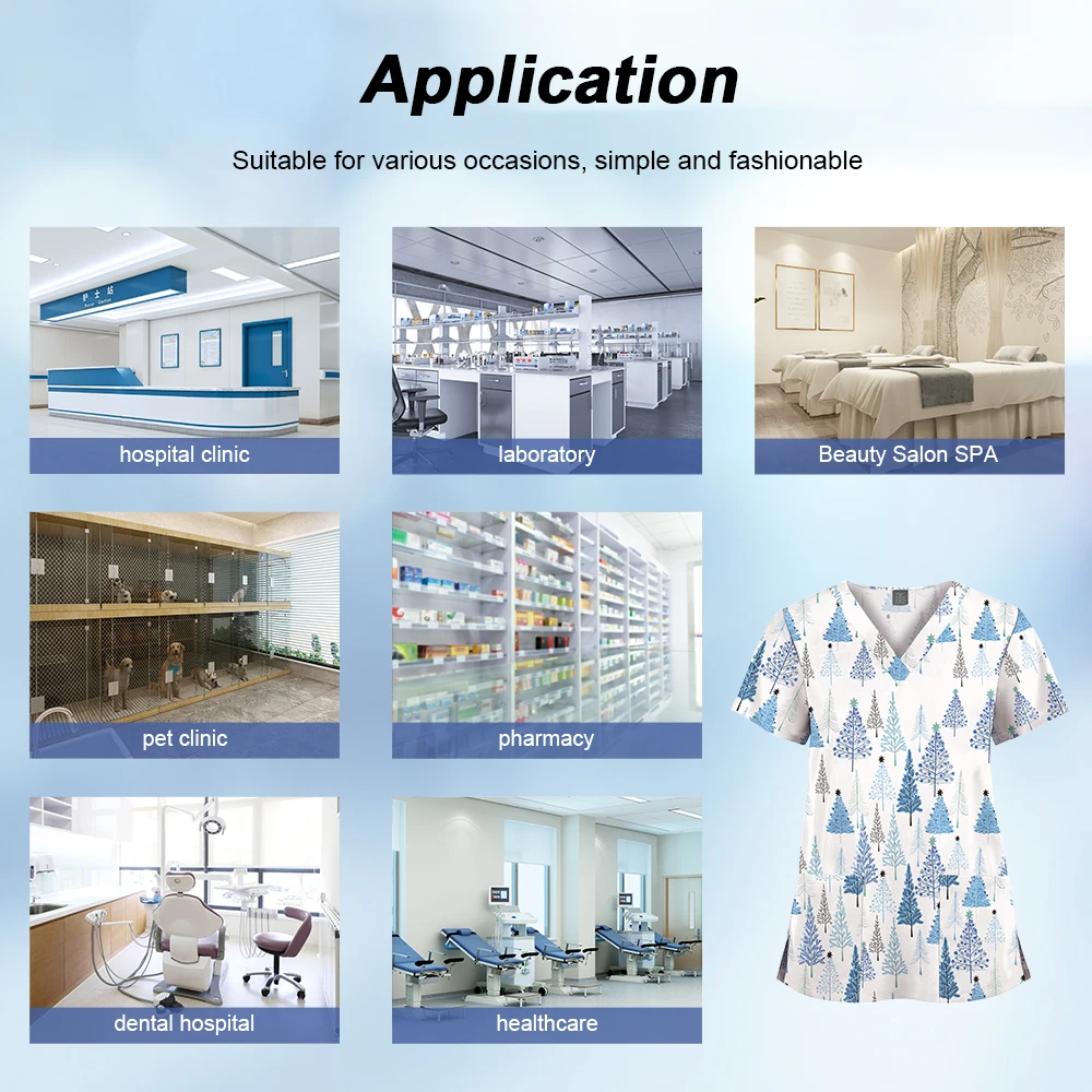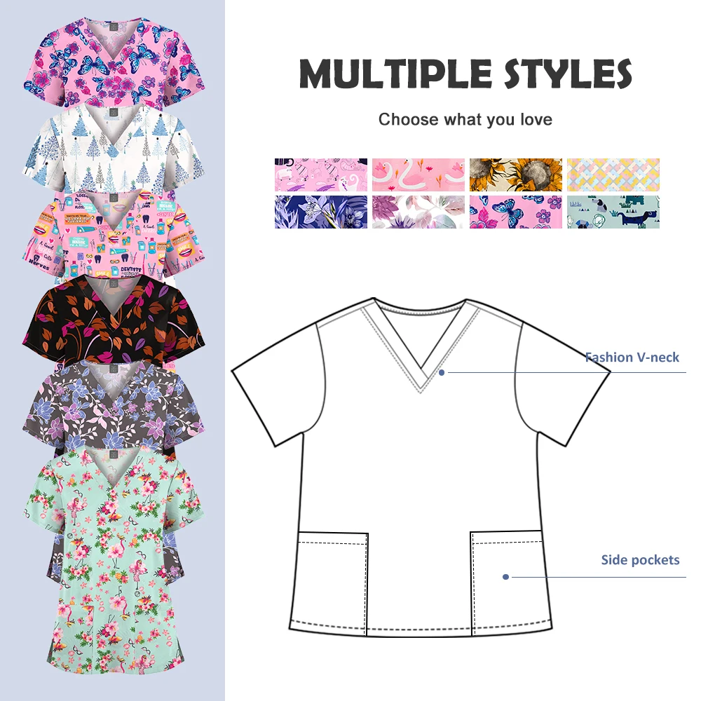 Stretchy Scrub Tops Medical Uniforms Printed Scrubs Top Women Beauty Spa Uniform Medical Nursing Work Clothes Doctor Nurse Scrub