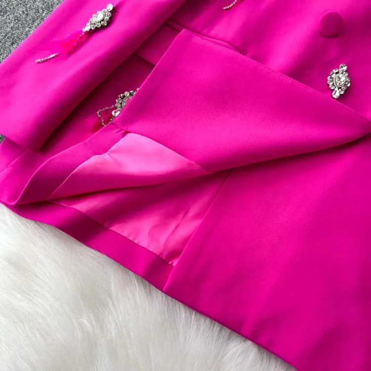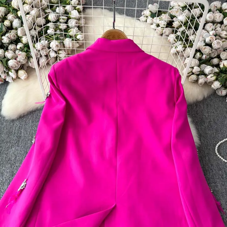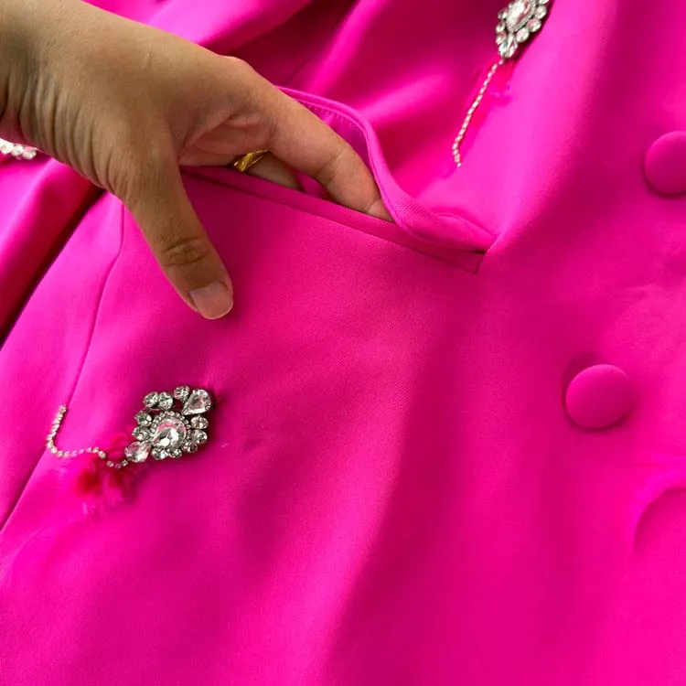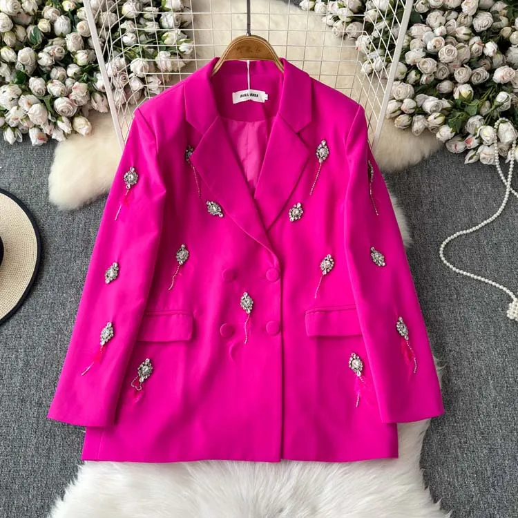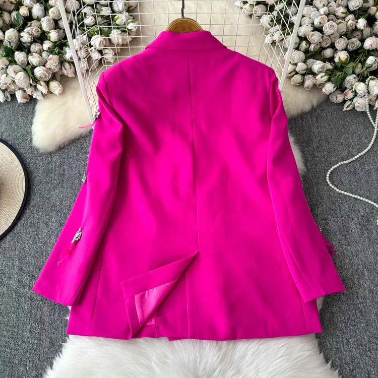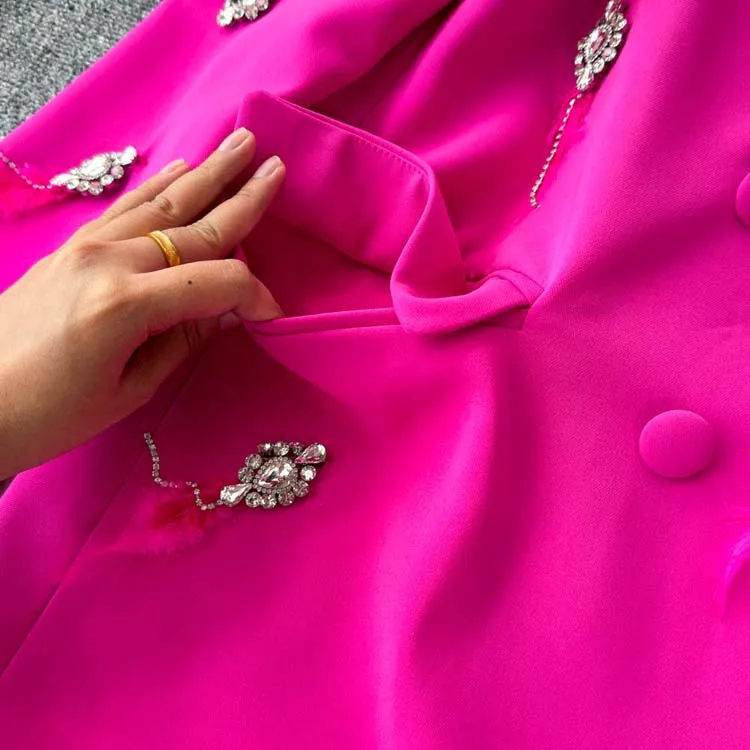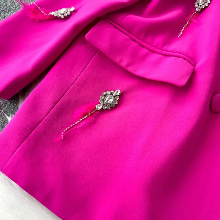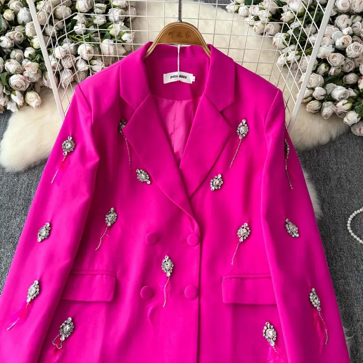 2025 Collection Faux diamond blazer Large size Luxury Feather rhinestone Double breasted jacket Spring Fall Ladies INKEO 5O003