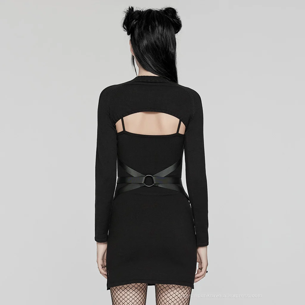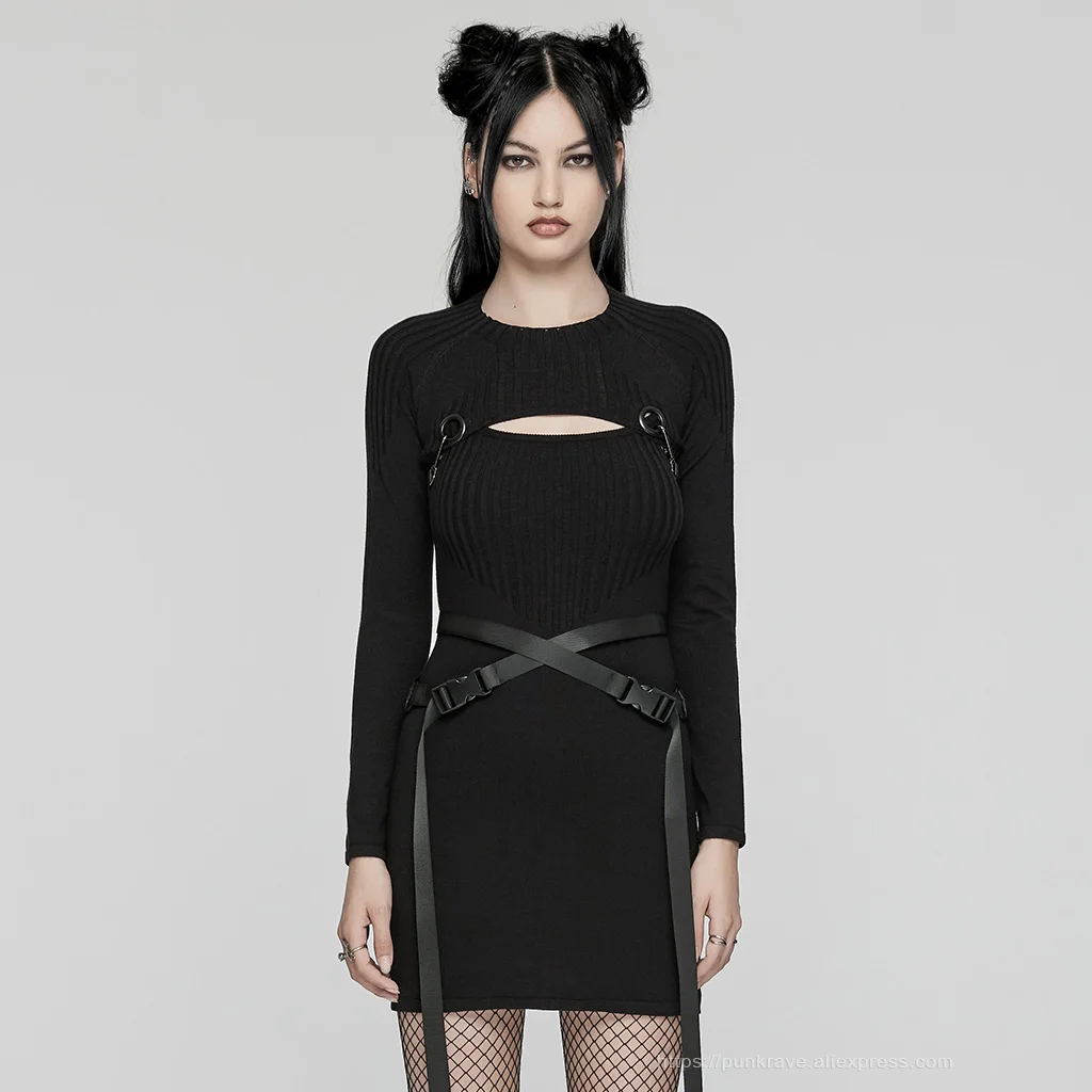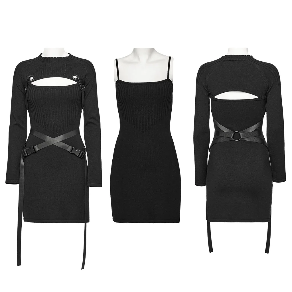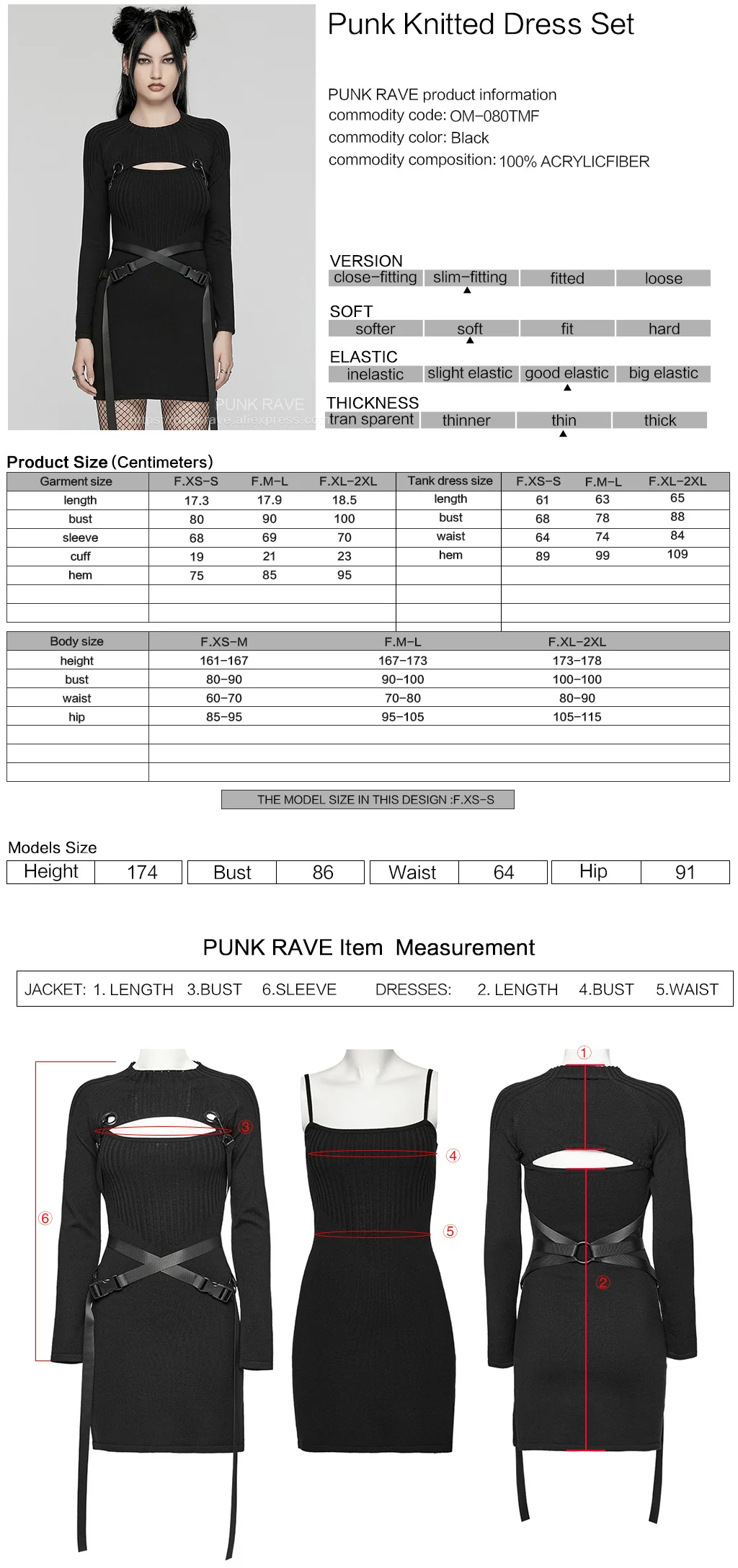 Punk Knitted Dress Set 1. Weaving with soft yarn 2. Techwear style with different weaving details 3. Detachable and adjustable buckle webbing enhance the body shape 4. Multiple wearing ways