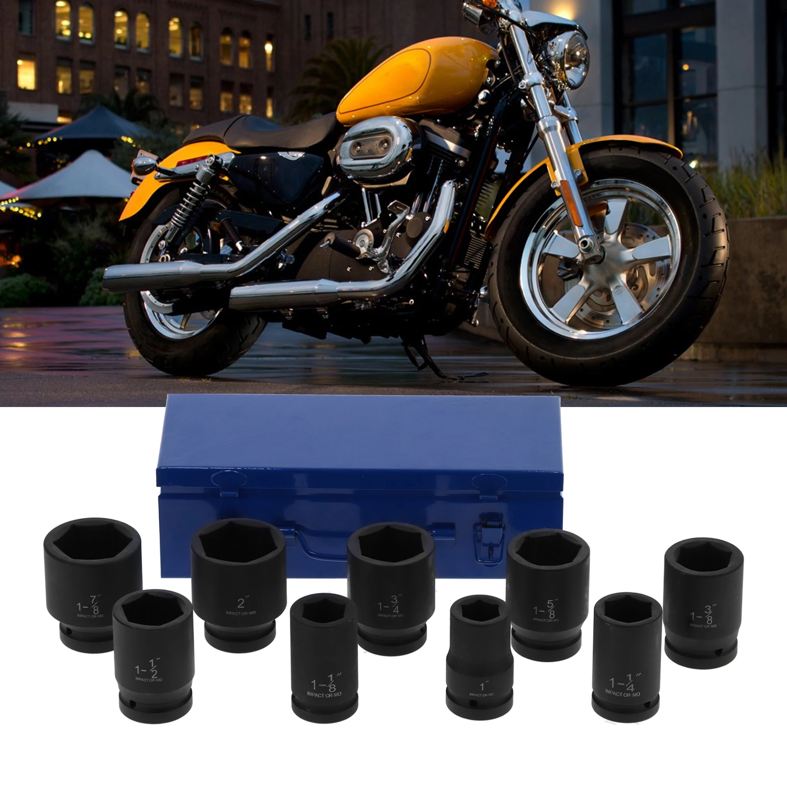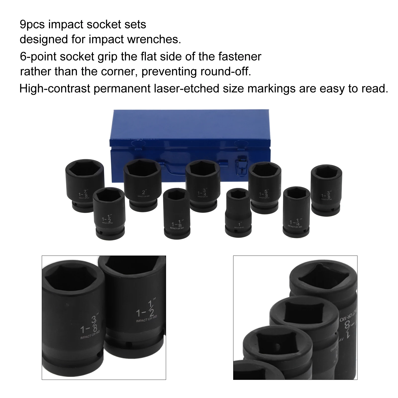9pcs socket sets with different specifications, designed for impact wrenches.