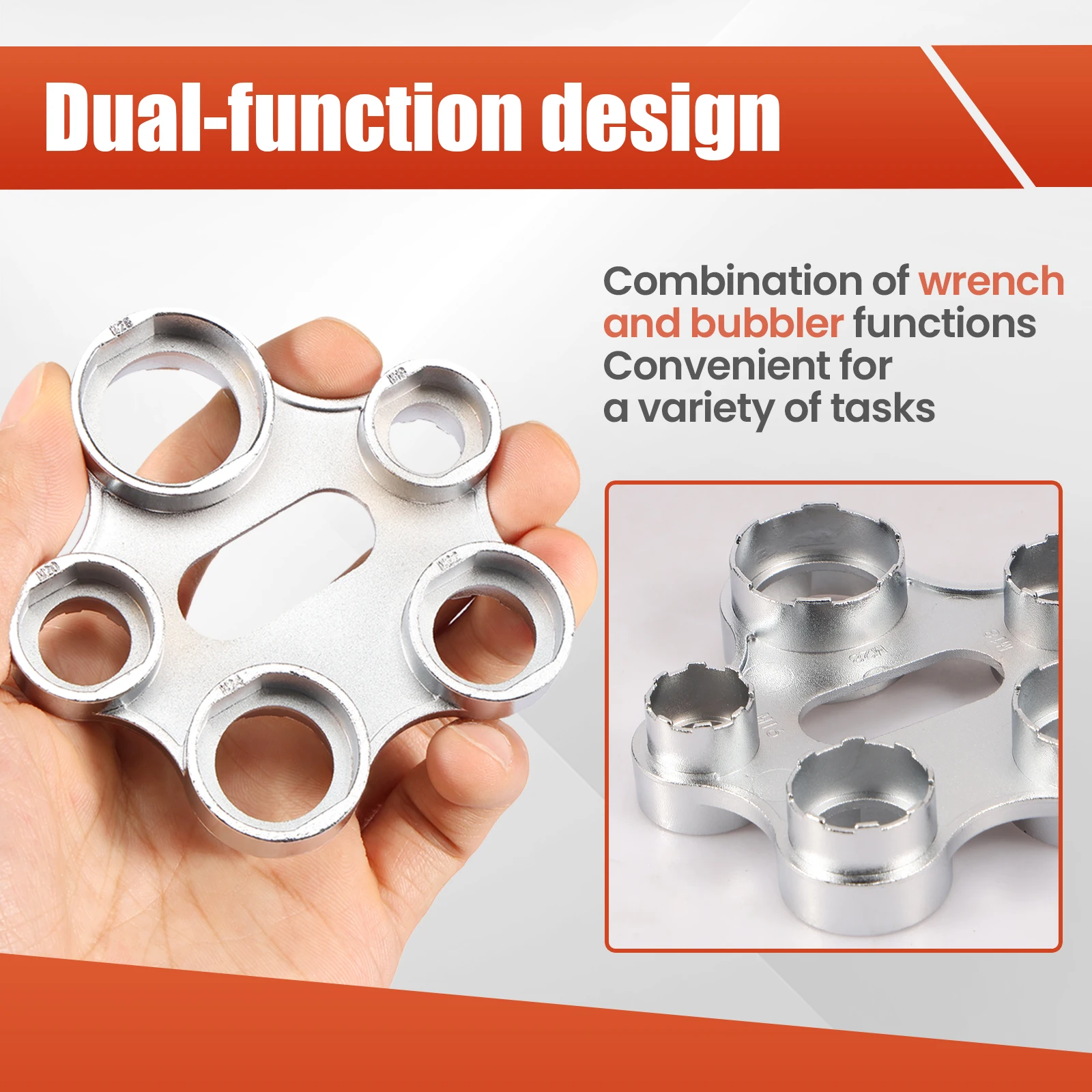 Double Functions: The faucet aerators removal tool combines the functions of spanner and faucet aerator remover. Convenient to use, ideal for various tasks