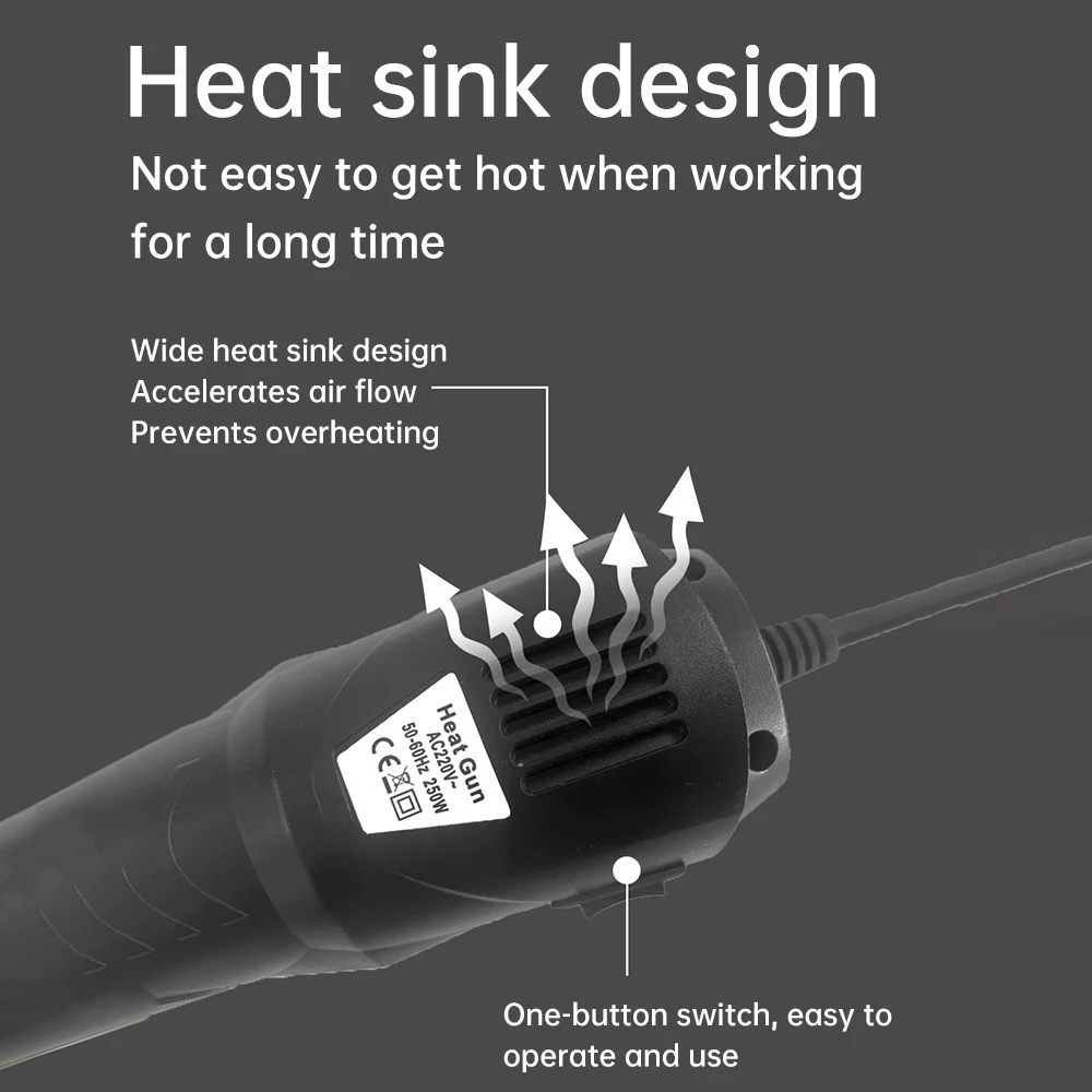 250W Hot Air Gun Portable Mini Heater for DIY Craft Embossing Shrink Wrapping PVC Multi Function Handheld Electrical Heat Tool
