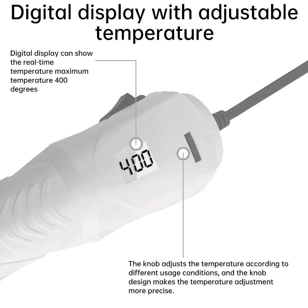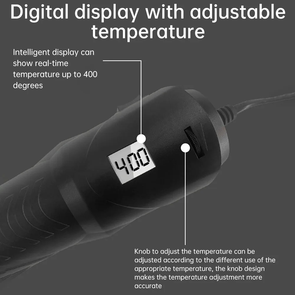 4. Intelligent digital temperature adjustment: The intelligent display screen can display real-time temperature, with a maximum temperature of 400 ℃.