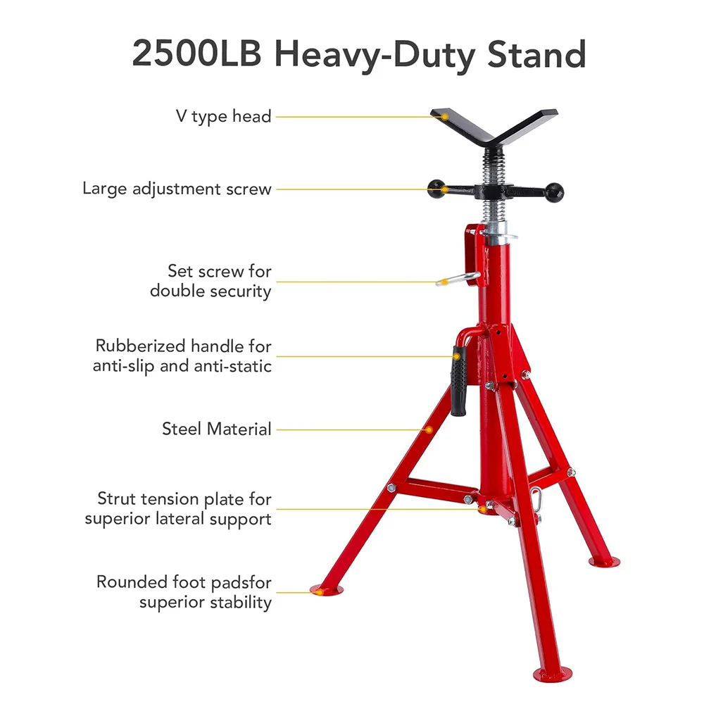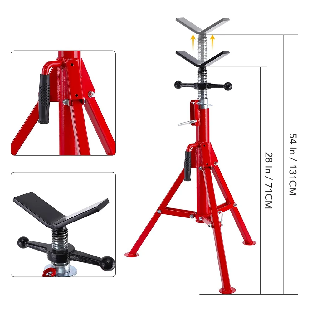 V Head Pipe Jack Stand 28-52 Inch Adjustable Height,1/8"-12" Capacity, 2500 lb Load Capacity with Portable Folding Legs