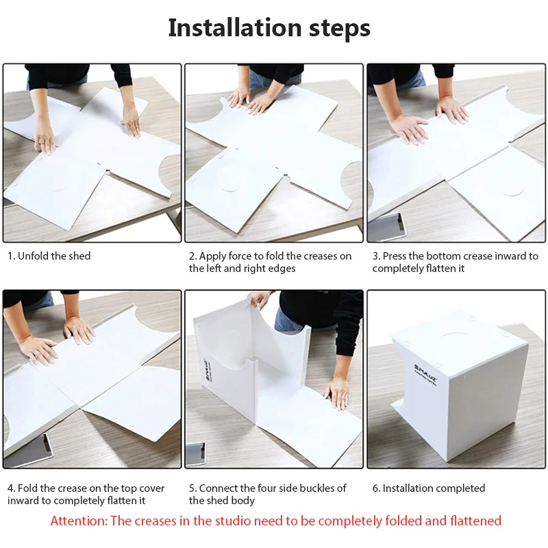 3. Assemble your own photo studio anywhere in minutes, you can unfold this LED lightbox studio and place it on any surface to get the good backdrop for small articles business photography, taking pictures for products.
