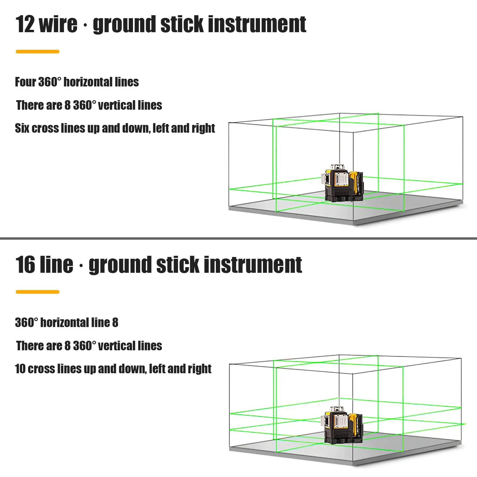3D Laser Level Plastic Box 12 Line Green Light Level Set With 1 Battery And 1 charge For Plastering, Tiling, Ceiling