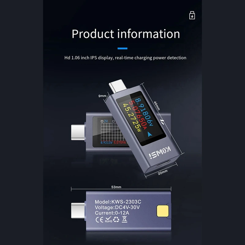 Fully C port compatible, you can have a panoramic view of the data. It uses a 1.06-inch TFT high-definition display to make your vision brighter. It uses the TIINA226 acquisition chip to make the bidirectional voltage and current more accurate