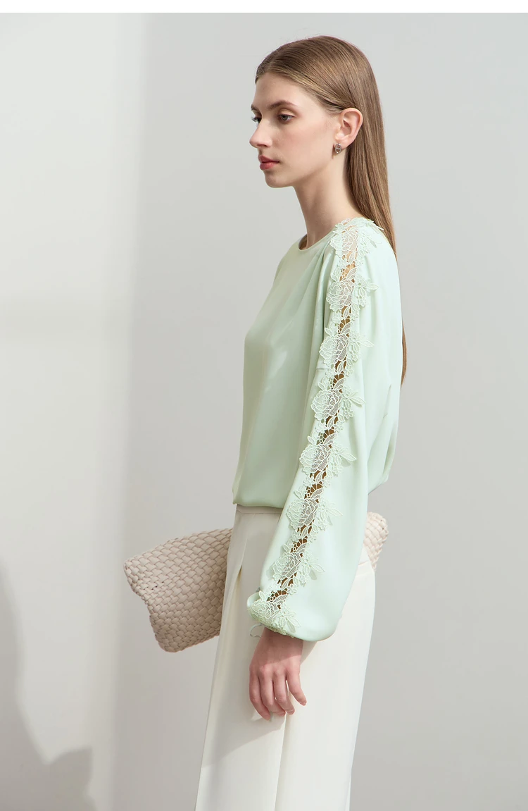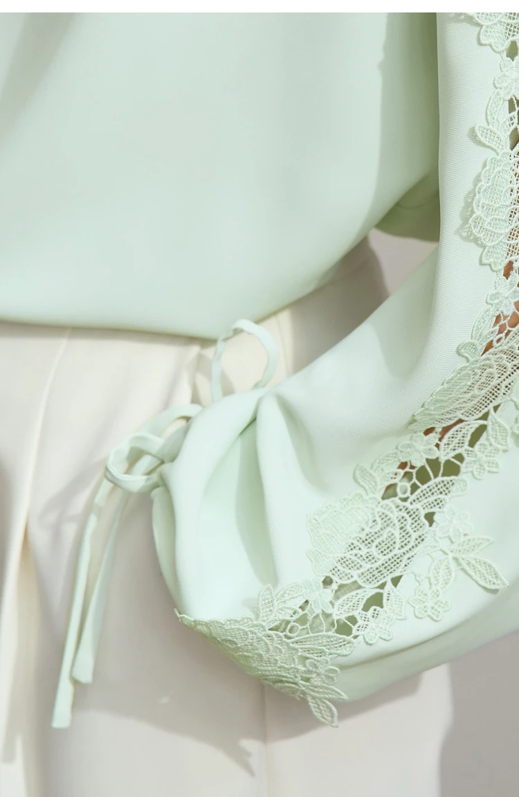 Amii Women's Elegant Chiffon Blouses 2025 Spring Lace Cuffs Fashion Non Elastic Shirt Long Sleeve Ladies Clothes Tops 12511024