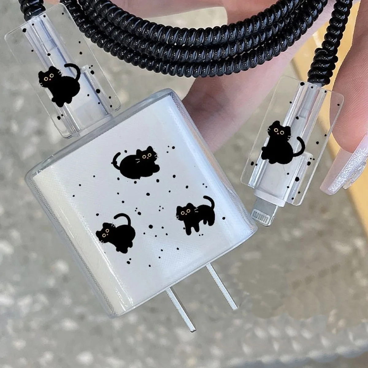 Cartoon Cat Clear Data Charging Cable Protector for iPhone 18W/20W Charger Case Cable Management Phone Wire Cord Organizers
