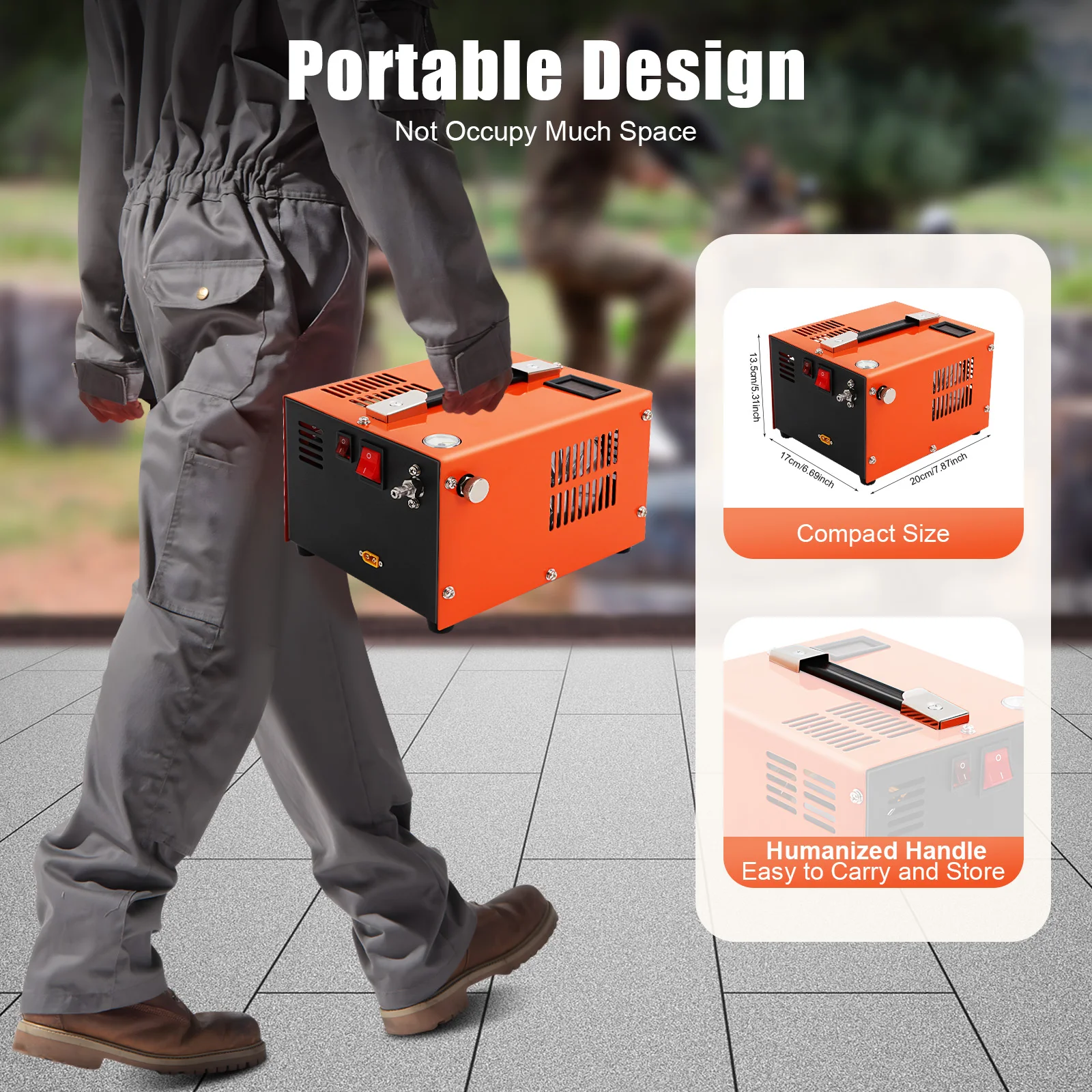 Efficient Pumping: A 250W high-performance motor can quickly complete the inflation task, and 0.53qt air can be filled in about 18 minutes at the pressure of 0 to 4500PSI, and about 6 minutes at the pressure of 2900 to 4500PSI, saving your precious time.