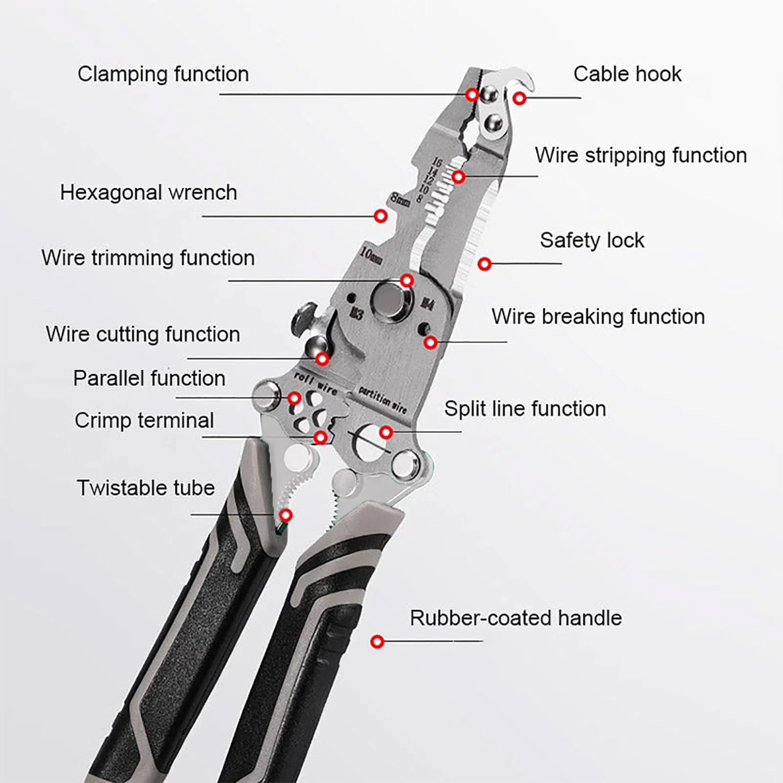 Versatile and Convenient: The multifunctional foldable wire stripper offers multiple functions in one tool, making it a must-have for electricians and diy enthusiasts alike.
