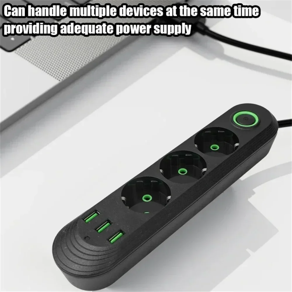 Electrical AC Outlets EU Plug Power Strip Socket 2M Extension Cable With 3 USB Ports Home Office Surge Protector Network Filter