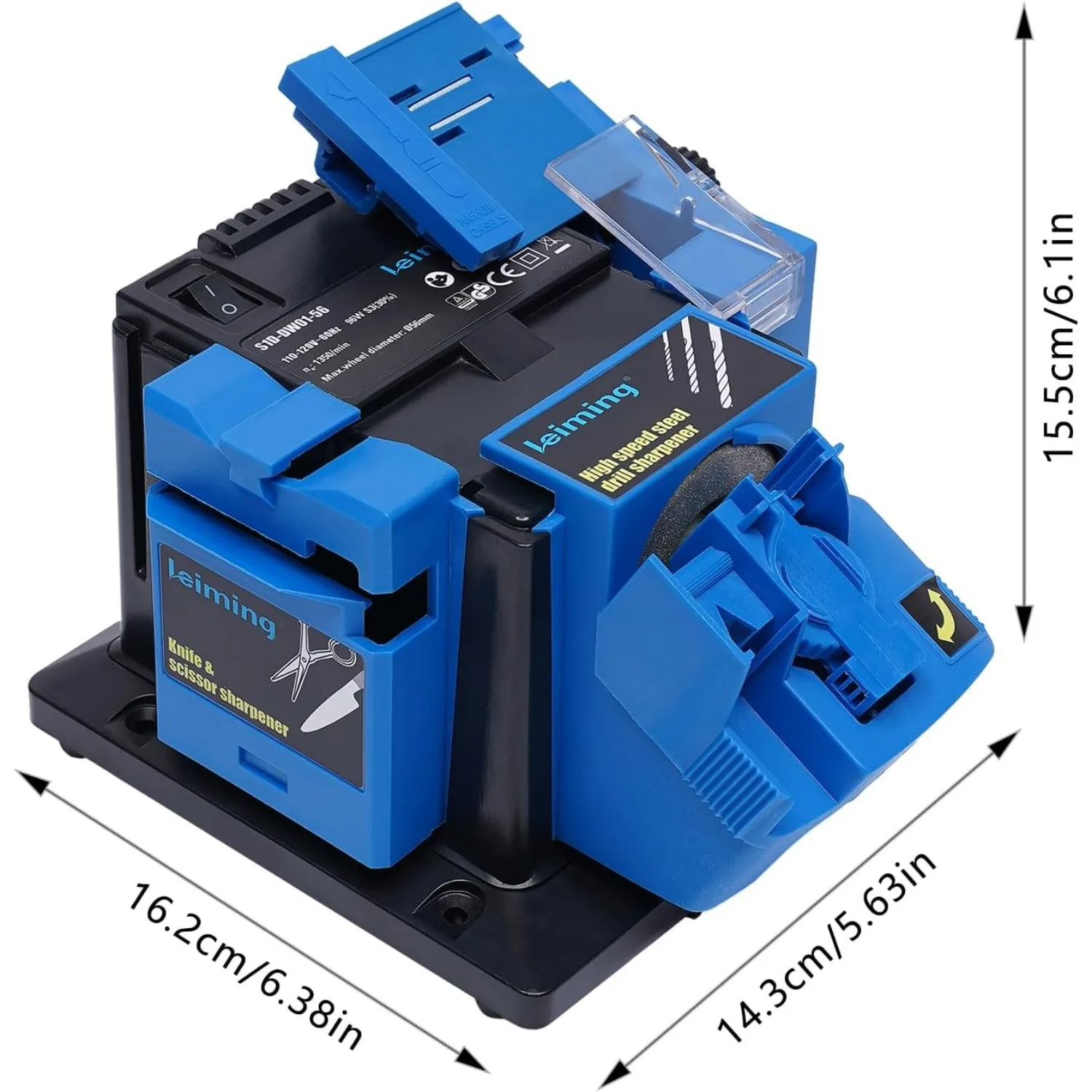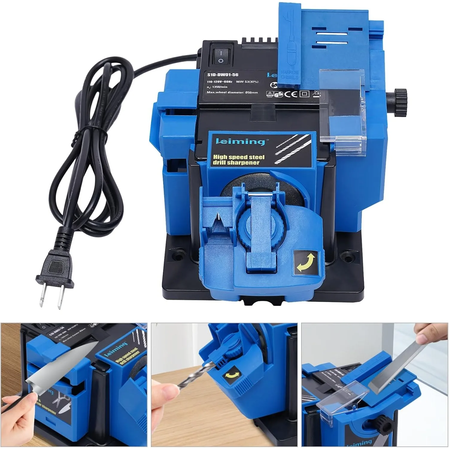 Want to grind better? This multifunctional electric sharpener may be the ideal choice for you. The high-quality engineering plastic ensures durability, the pure copper motor and 1350rpm speed make the machine work efficiently, and the 15°-50° adjustable angle design makes it suitable for many different types and sizes of tools.