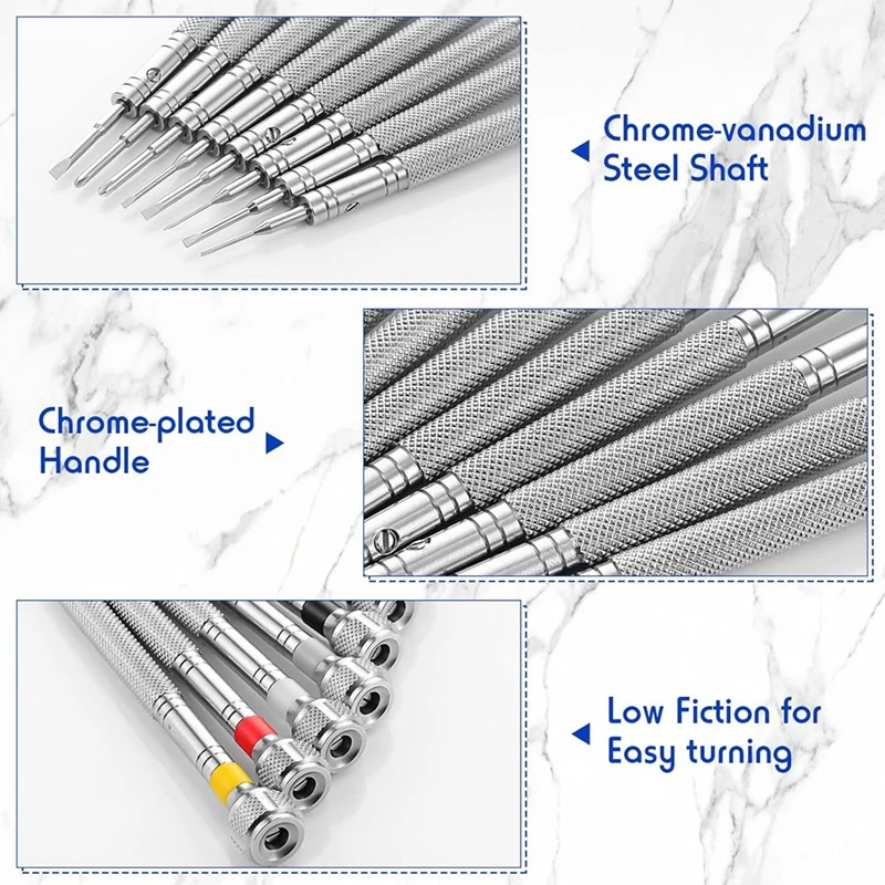 Versatile Applications: Ideal for repairing watches, eyeglasses, and jewelry, this kit also serves well for electronics and other delicate items requiring small screws. It's a must-have for both professional and home toolboxes.
