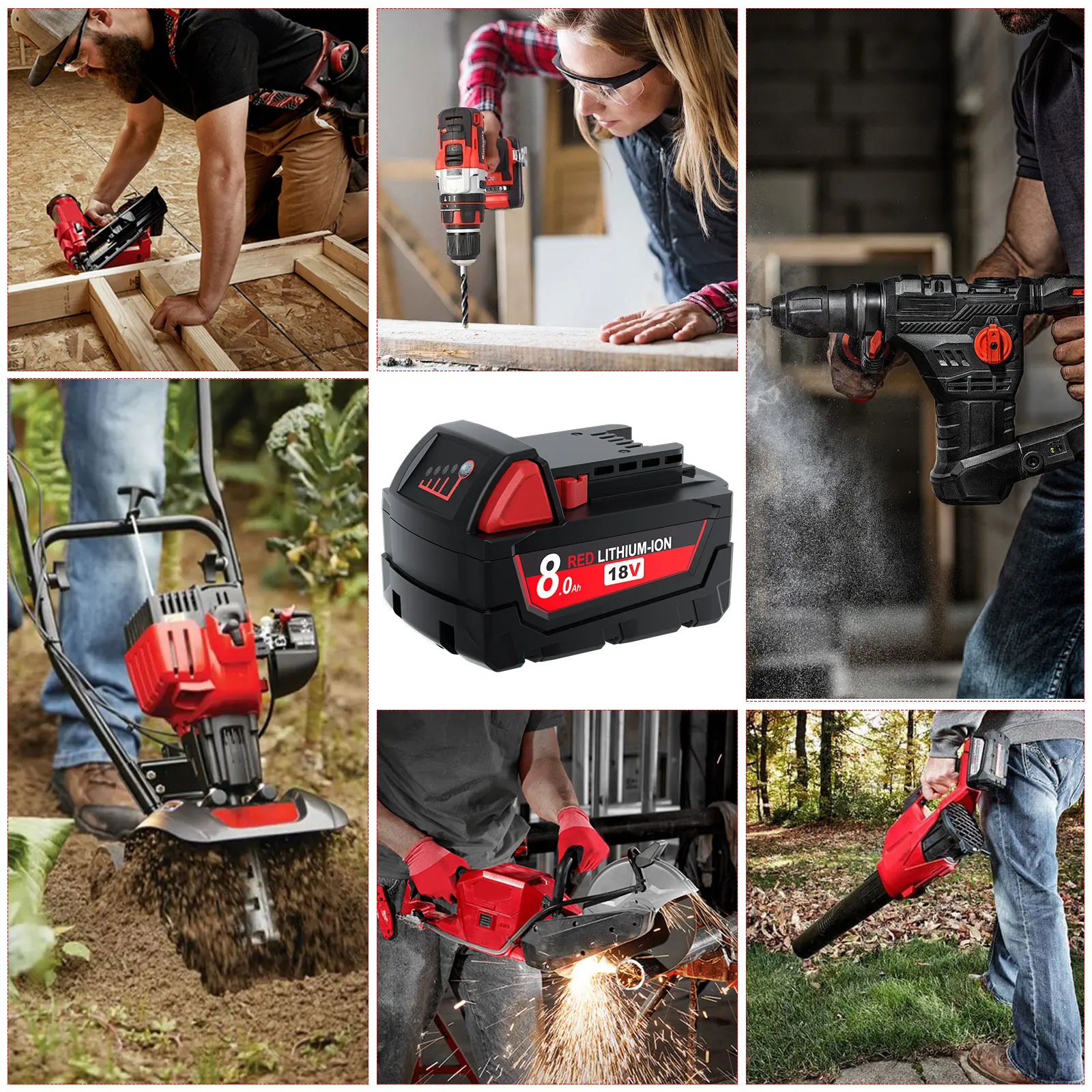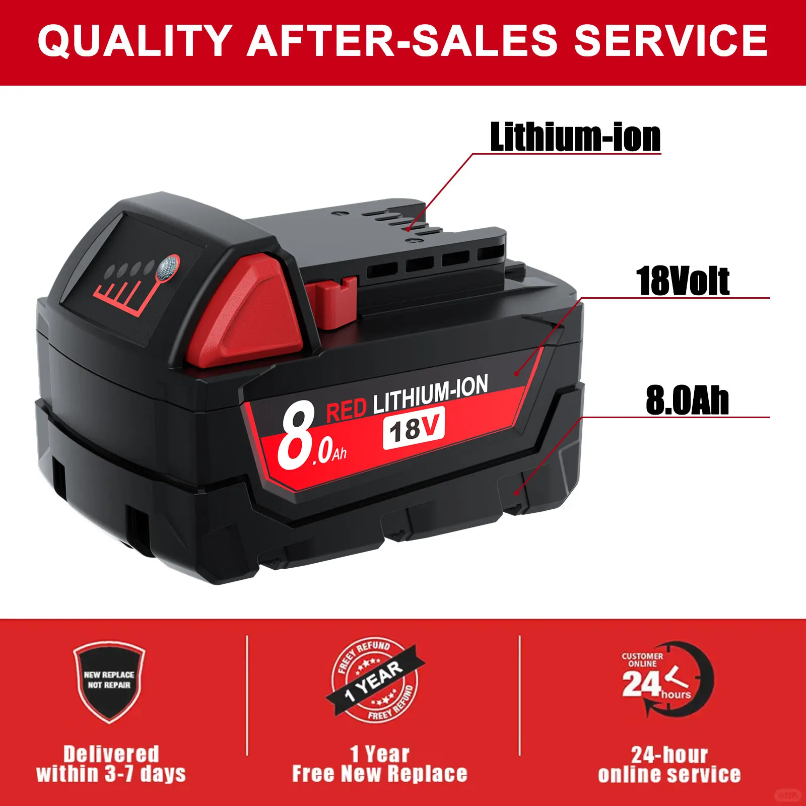 For Milwaukee M18 Battery 8000mAh 18V Rechargeable Battery For Milwaukee Tool M18B5 XC 48-11-2402 48-11-2411 2604-22