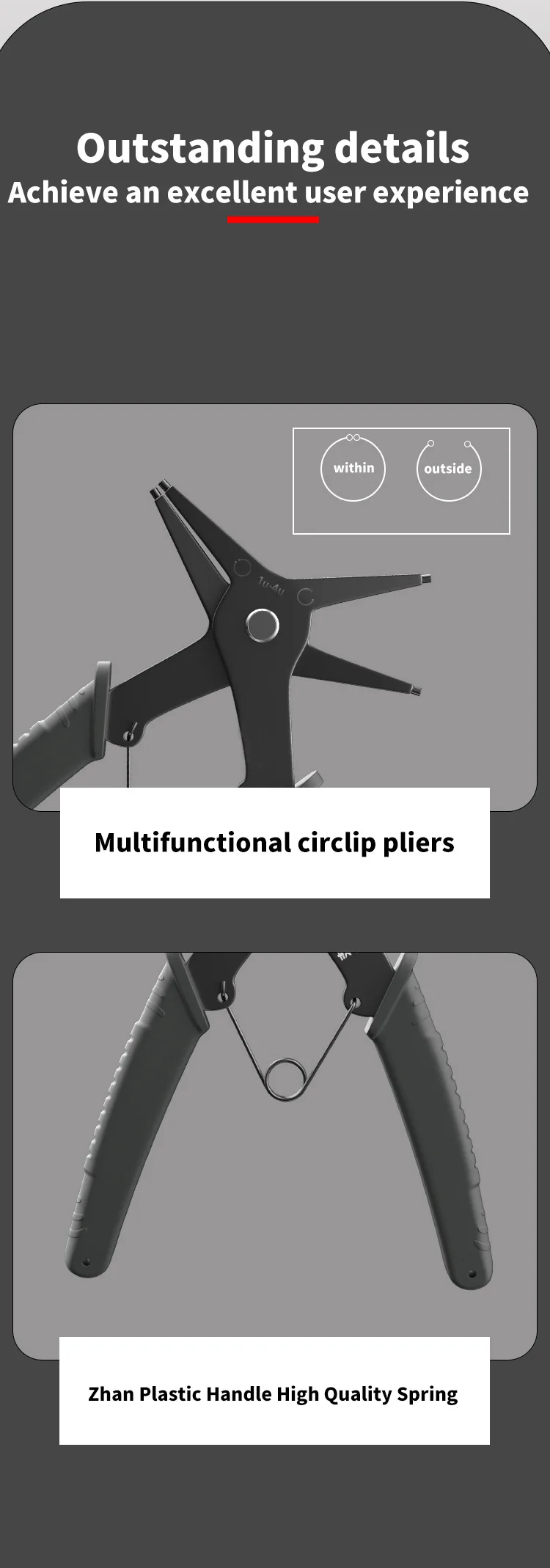 OUDISI Dual use Circlip Pliers Inner Straight / Outer Straight / Inner Curved / Outer Curved Circlip Pliers Snap Ring Pliers Ret