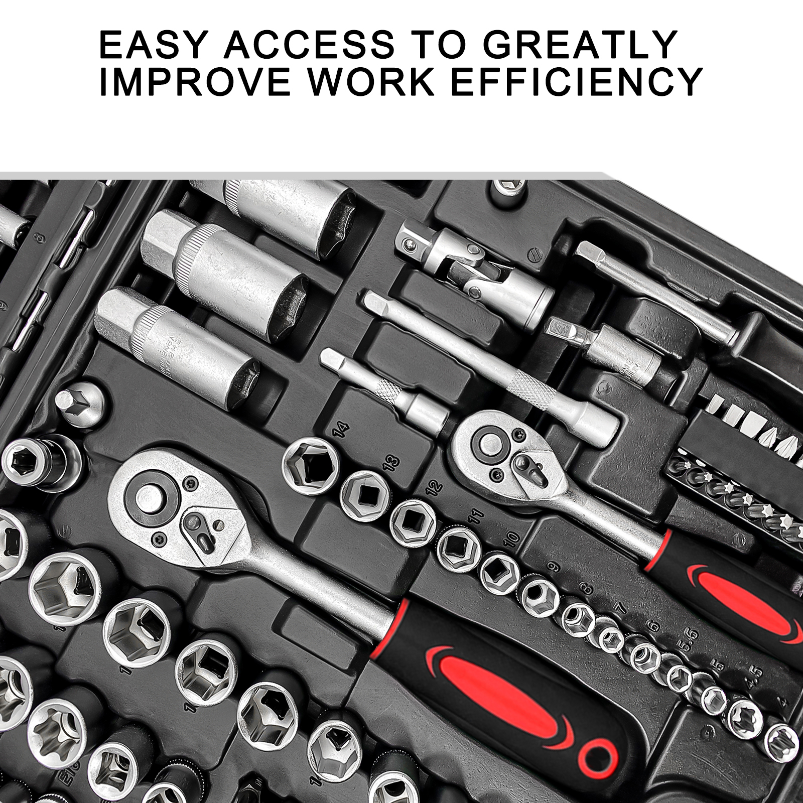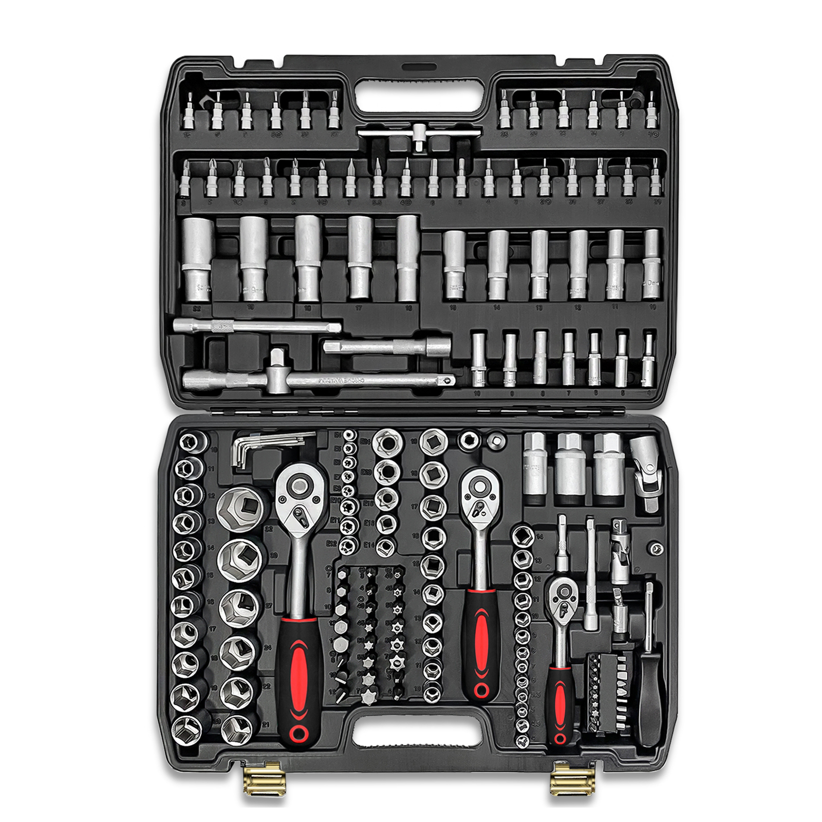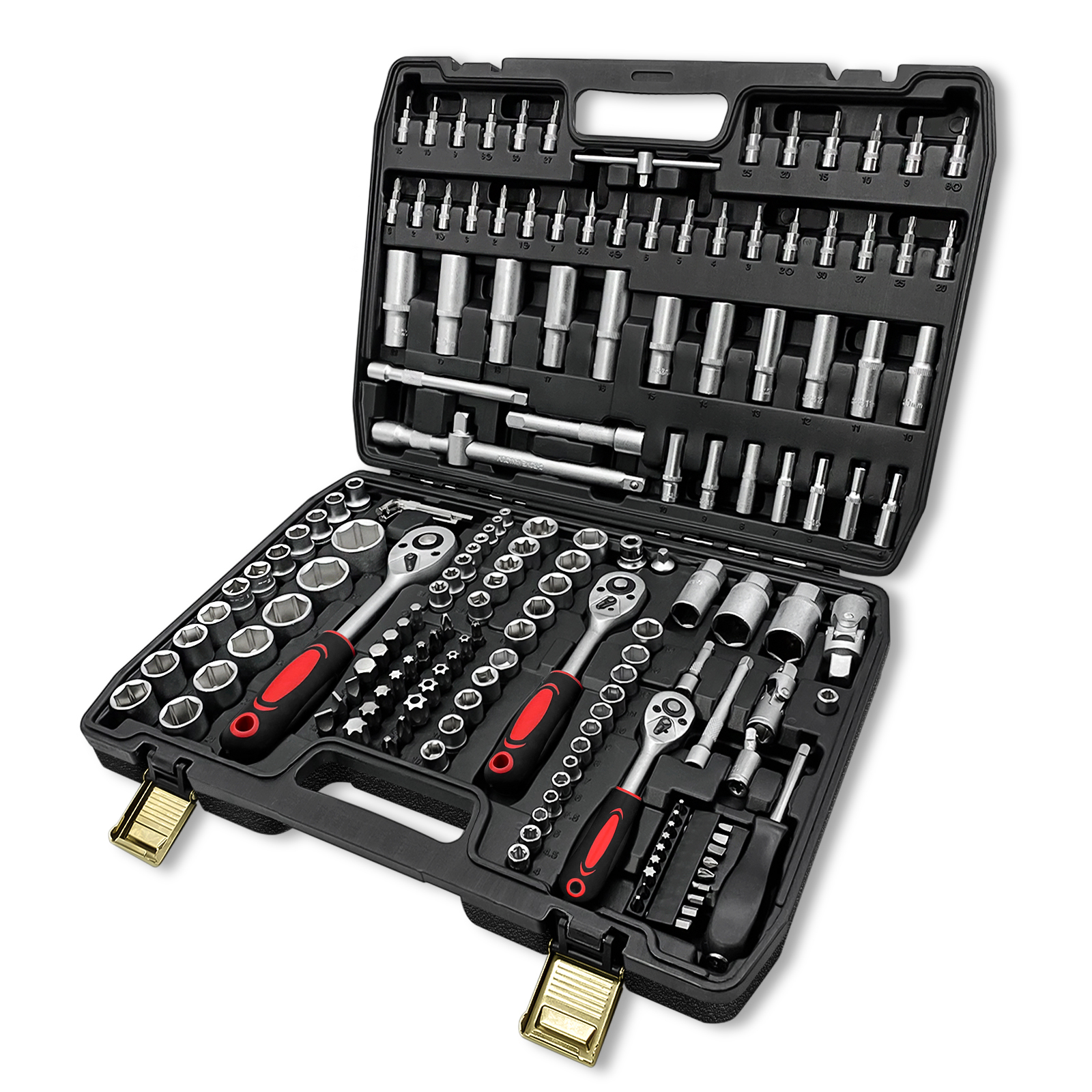 Professional socket set 1/2" 1/4" 3/8" 172 pieces. Sockets are made with high quality Chrome Vanadium steel Screwdriver bits and star socket bits are made with S2 steel for longer life and durability. S2 steel is harder done traditional 8650 steel and gives for bits exceptional life span. Sockets equipped with AS-DRIVE system which increases maximum torque by 25% with full protection to caps/nuts