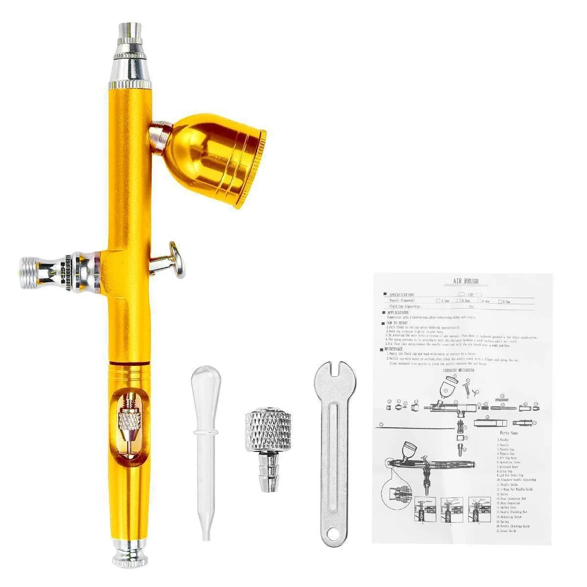 0.3mm needle nozzle, broad spray, double action trigger for easy and accurate spray.