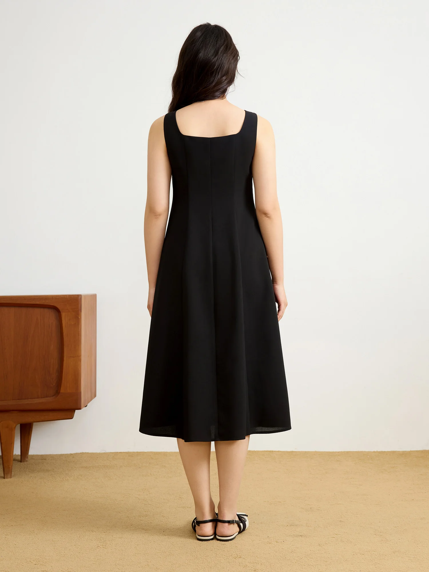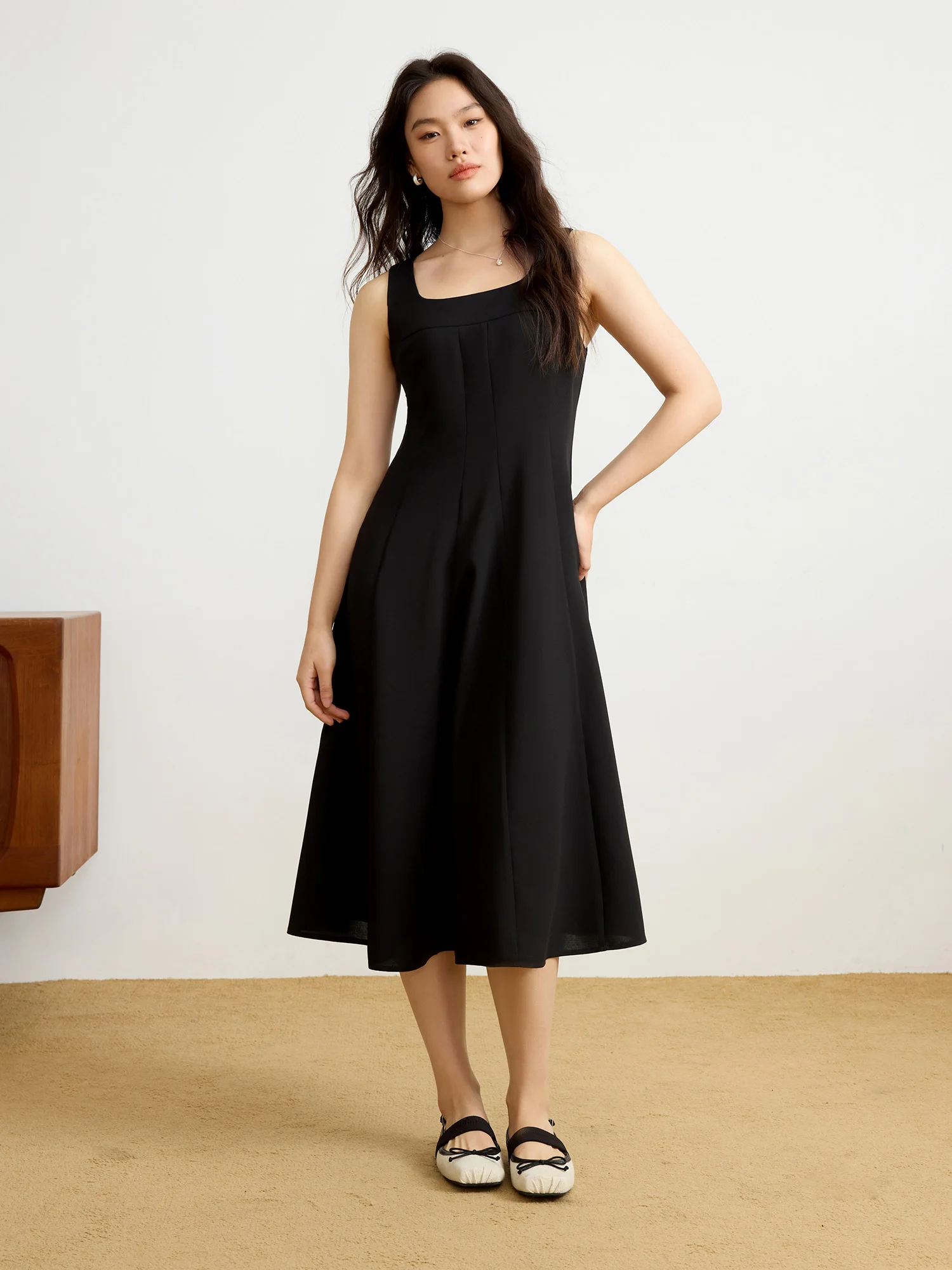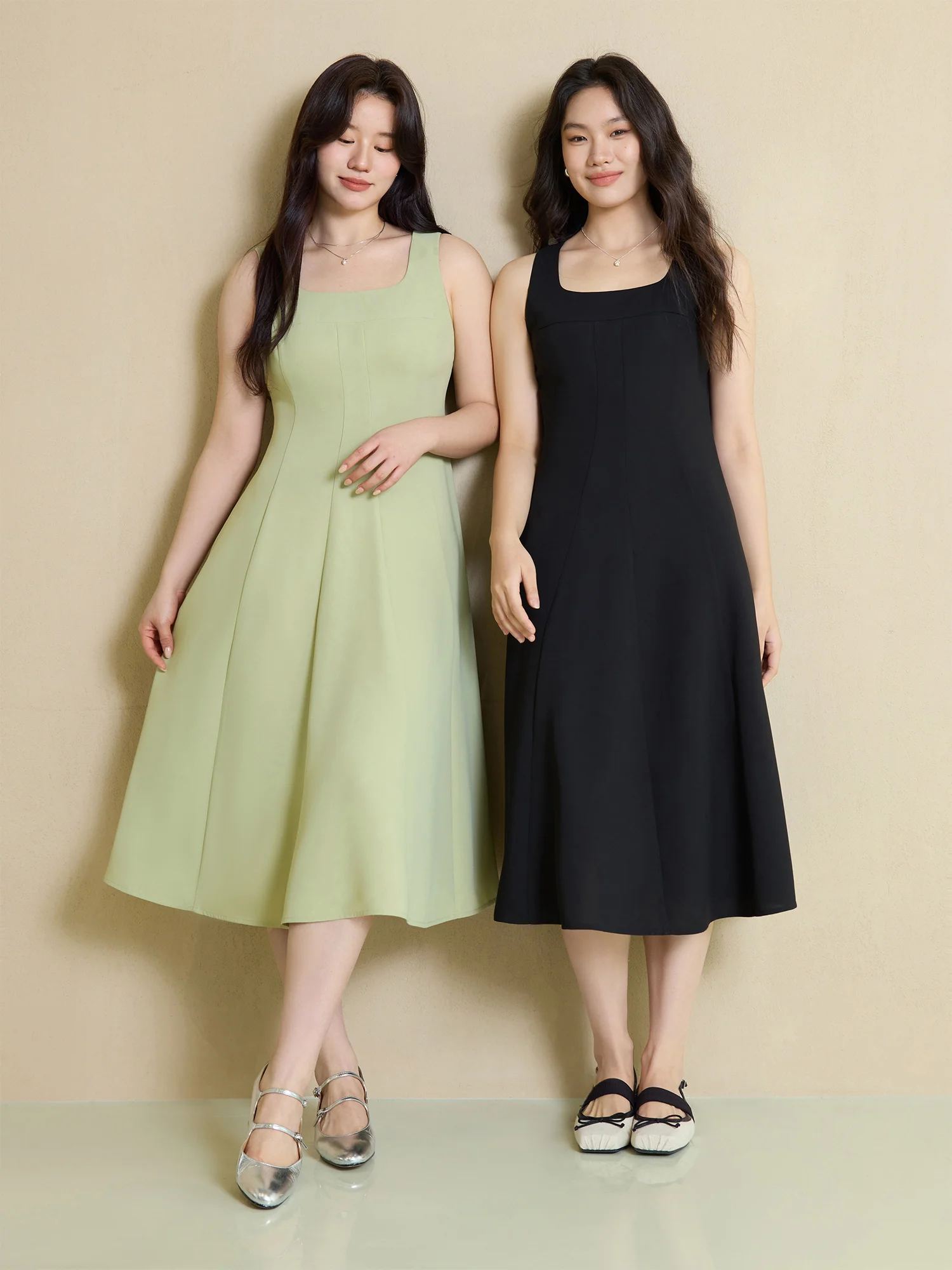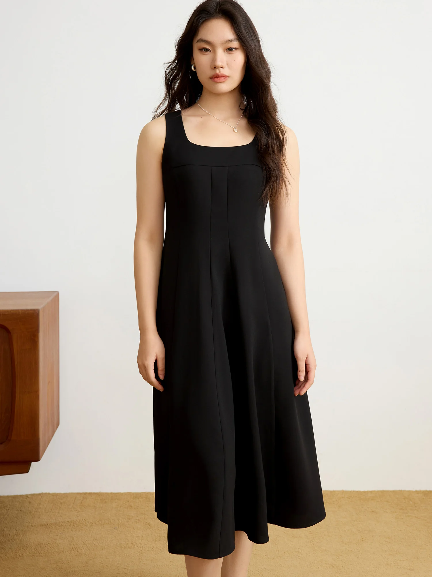 DUSHU【2 Veison】Women Spring Acetate Dress Office Lady Black Temperament X-LINE Dress Sleeveless Dress 25DS81204+25DS81206