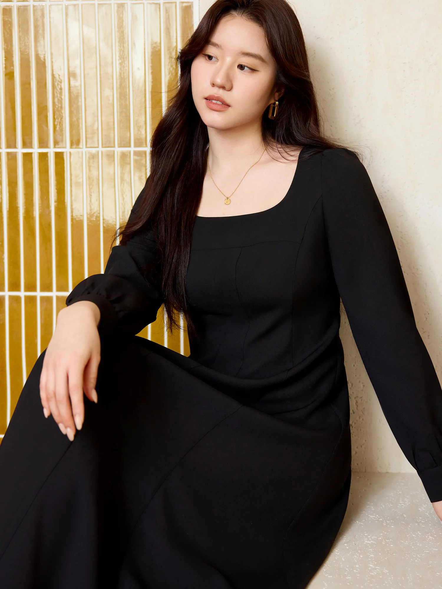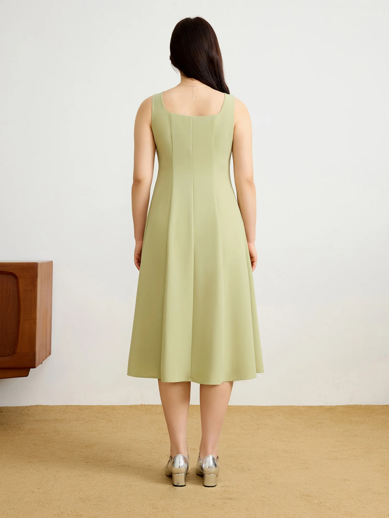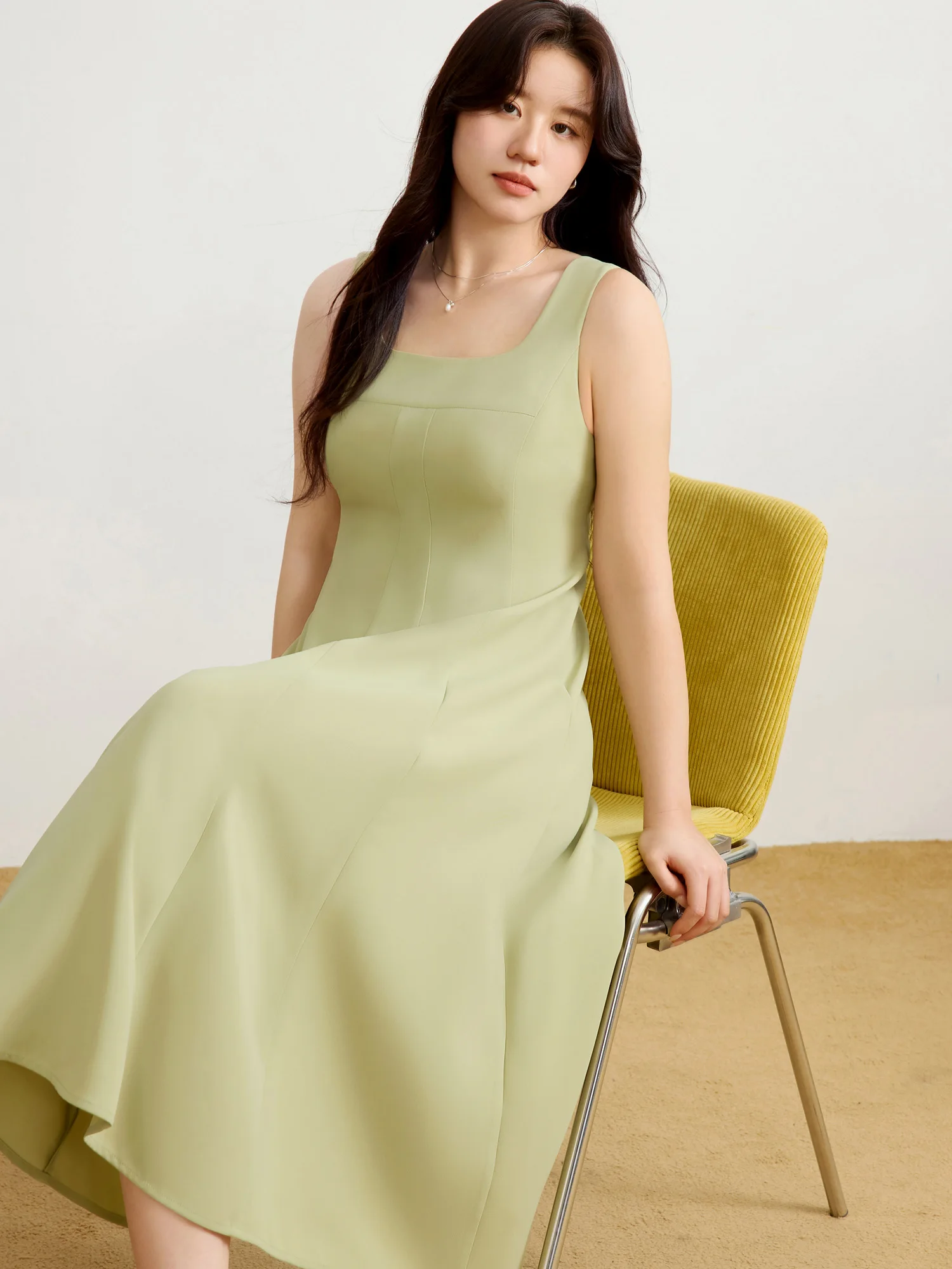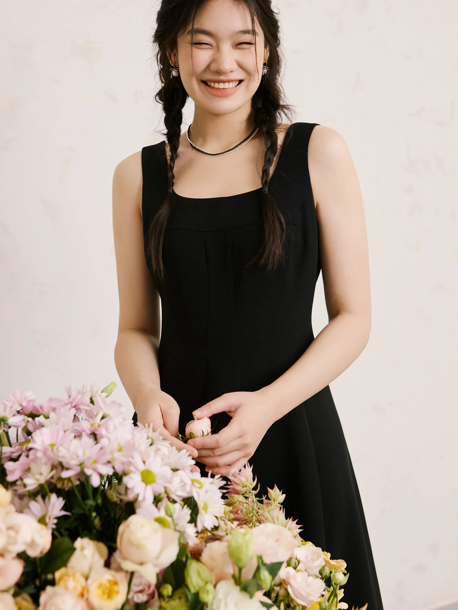 DUSHU【2 Veison】Women Spring Acetate Dress Office Lady Black Temperament X-LINE Dress Sleeveless Dress 25DS81204+25DS81206