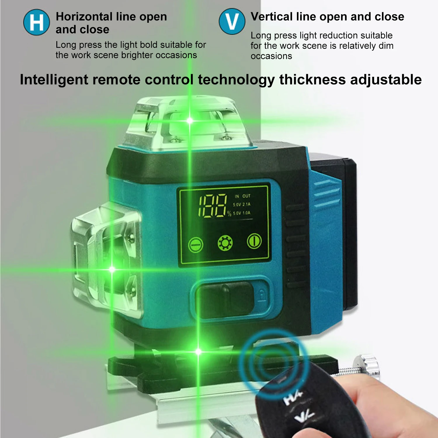 【Wide Application】 This laser level is designed to be versatile and easy to use. It can be easy attached to Walls or placed on the ground, allowing for multiple applications. The remote control technology allows for operation, enabling you to turn on and off the horizontal and vertical lines with a simple press.