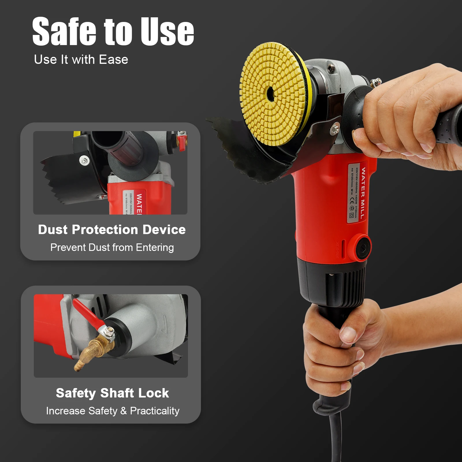 Safe to Use: This product has a dust protection device that effectively prevents dust from entering and optimizes the air circulation system, and is equipped with a safety shaft lock that increases the safety and practicality of the product.
