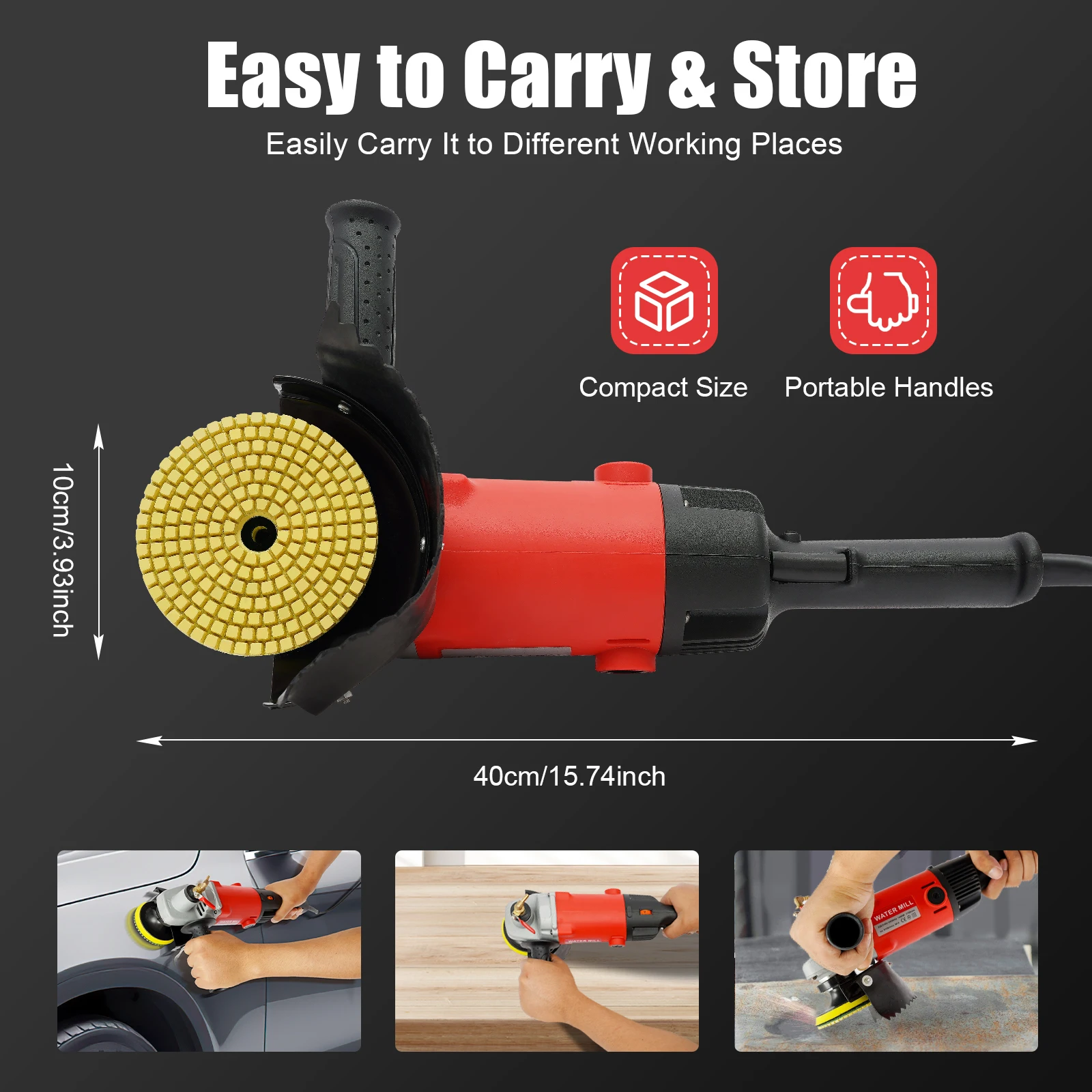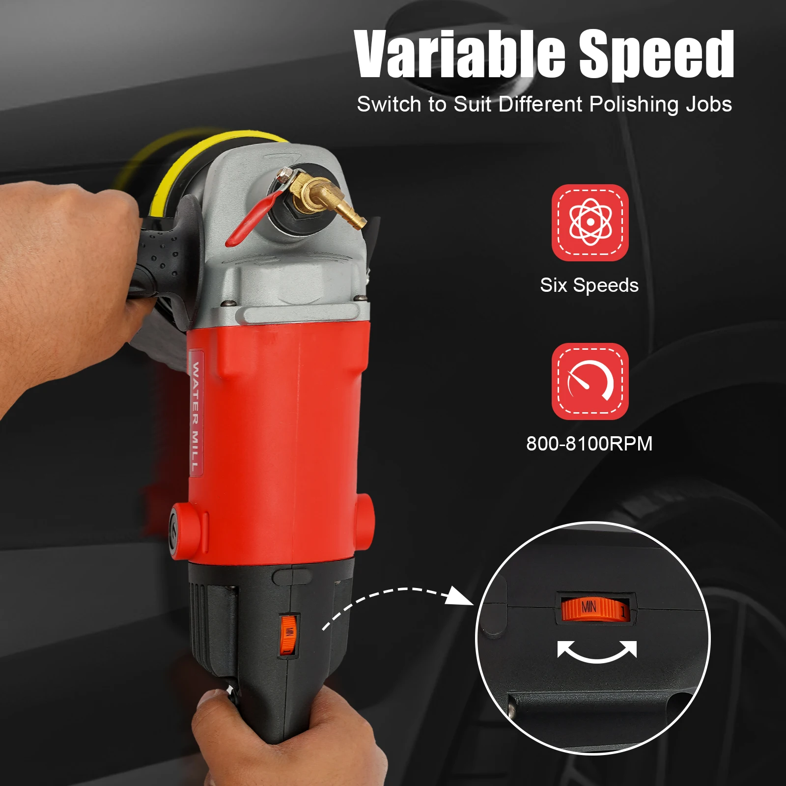Freedom to Variable Speed: You can freely adjust the six speeds between 800-8100R/MIN via the variable speed switch to suit your different polishing jobs.