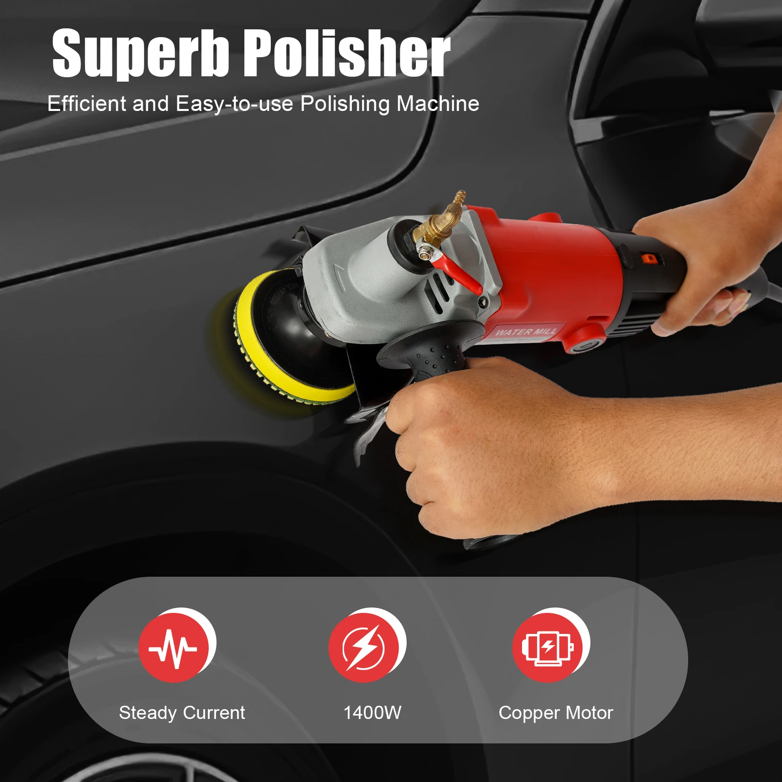 Electric Polisher 1400W Hand Up-flooding Water Mill Trimmer Tool 6 Speed Adjustable 800-8100RPM 220V W/Grinding Disk & Pad for Home Industrial UseWhether for commercial or domestic use, you should not miss this polisher. It is made of high-quality copper, aluminum, and nylon material for durability. It is made with advanced technology and if you are looking for an efficient and easy-to-use polishing machine, then it will be the ideal choice for you.