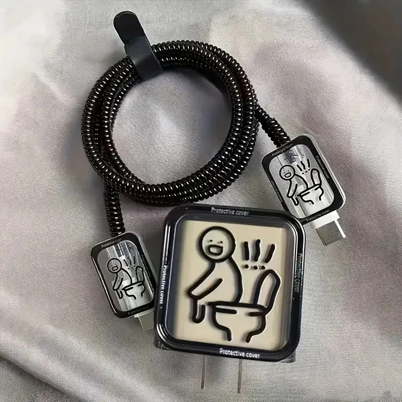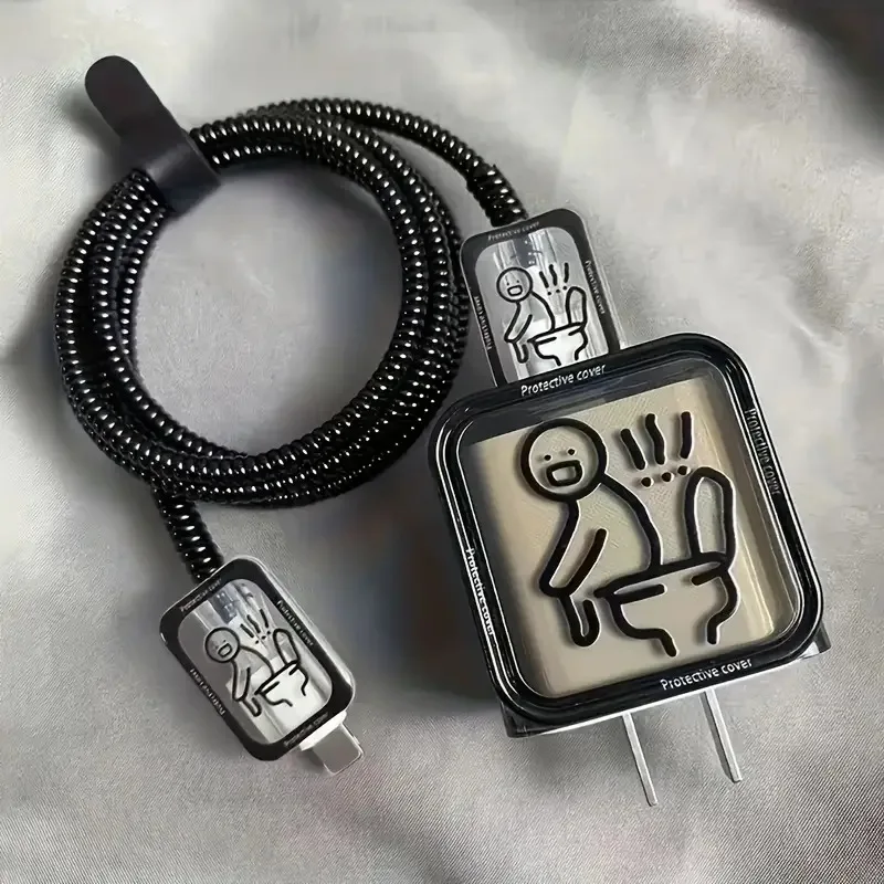 Creative Charger Protector Case for iPhone 15 14 Pro 18/20W Charger Case Shell USB Cable Cover Charging Data Cord Winder Wrap