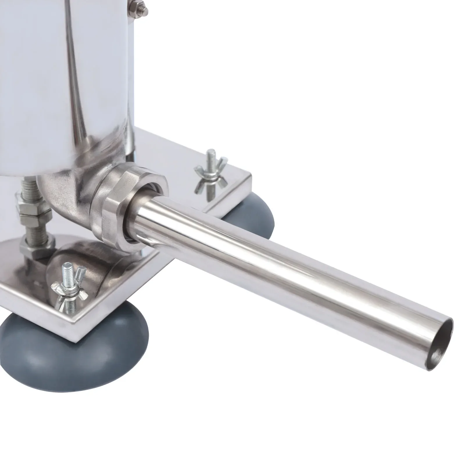 Stainless Steel Base: The base is made of stainless steel. Strong and durable stainless steel provides stable support for this manual sausage stuffer.