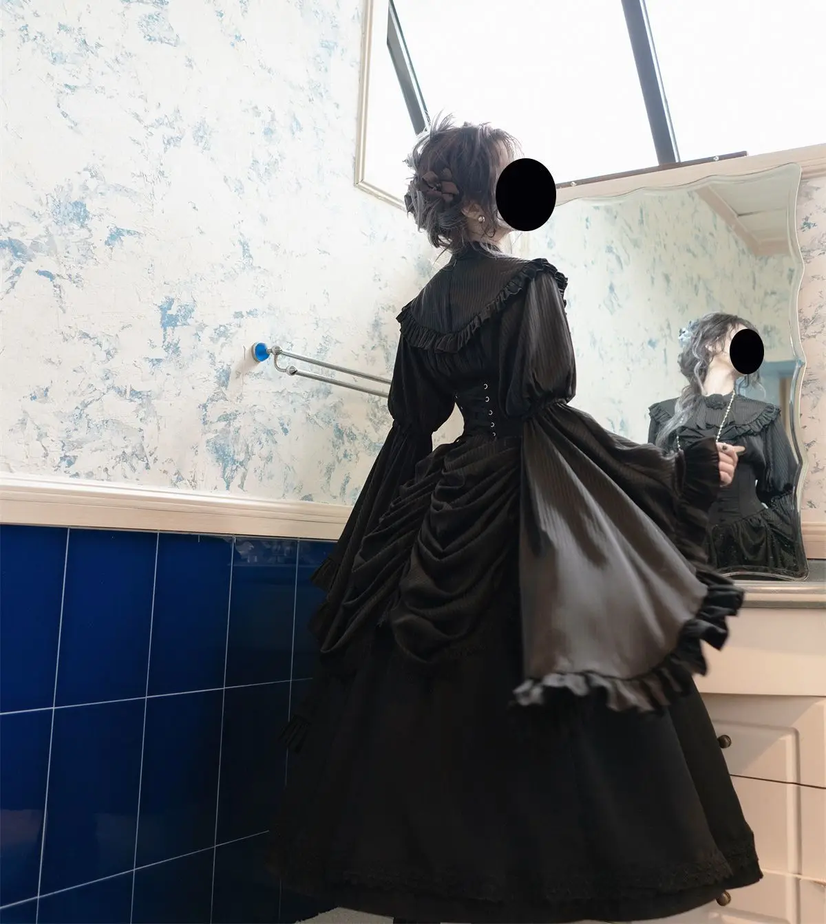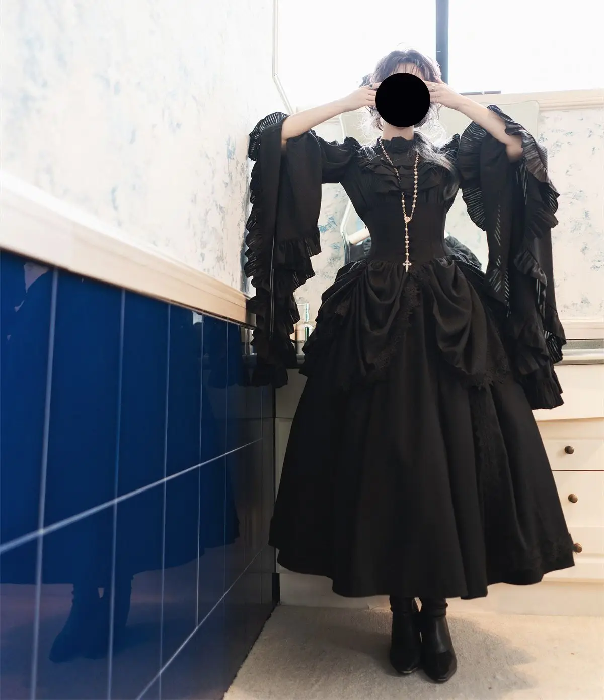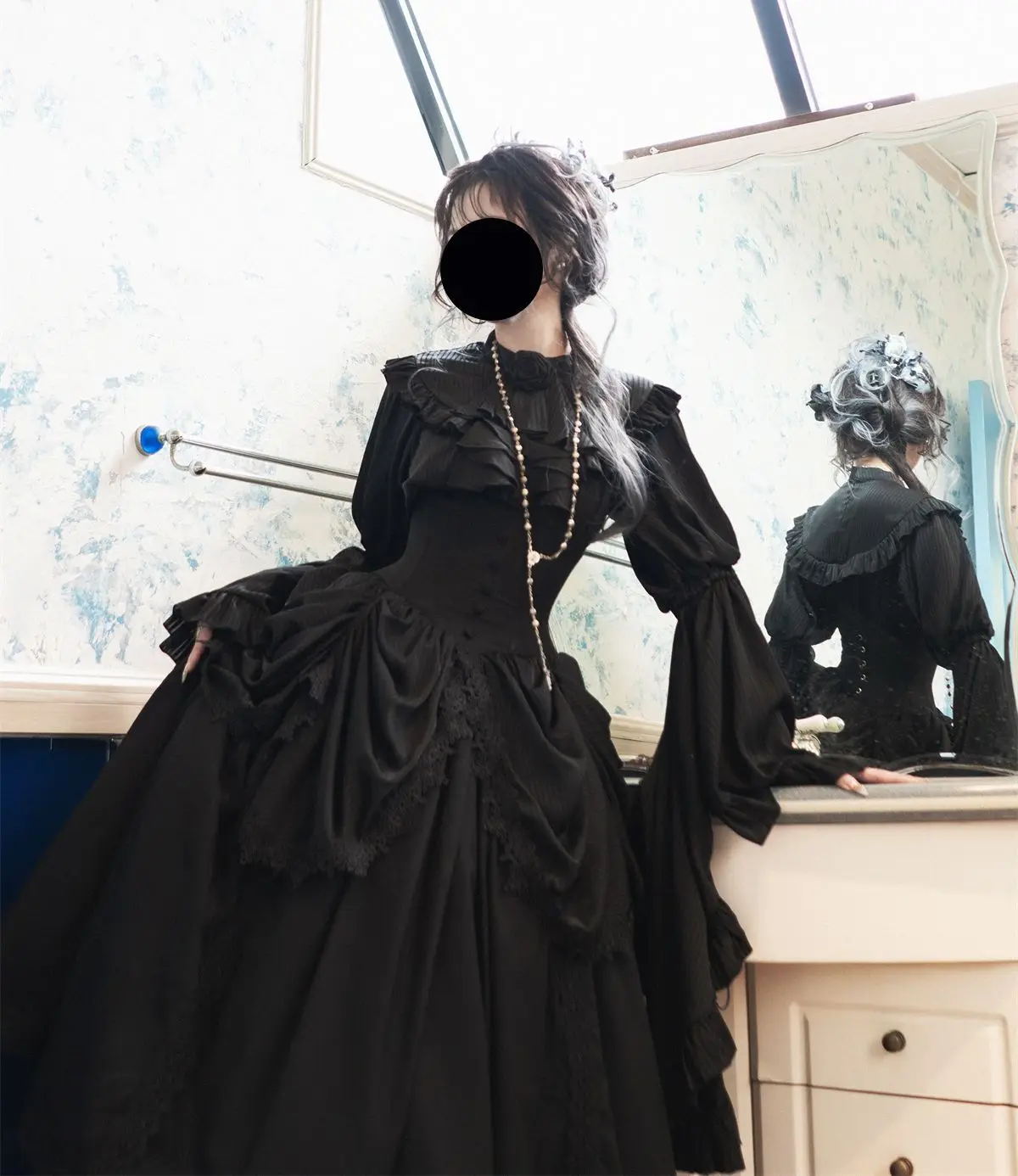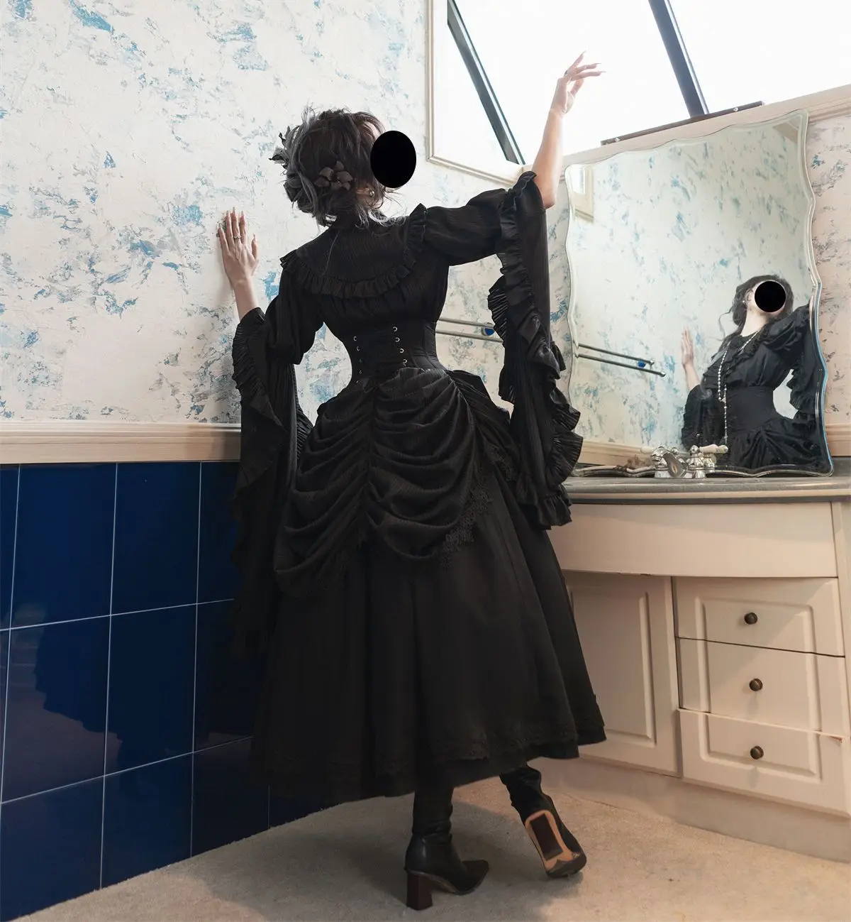 Coalfell Sleepwalking Lolita Gothic Style Lolita Slim Fit and Slimming Dark Halloween Princess Sleeve Goddess and Skirt Set