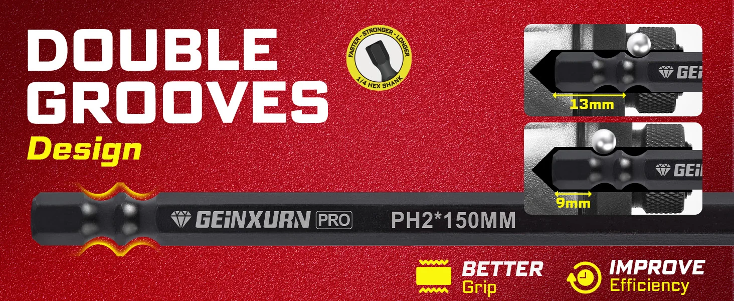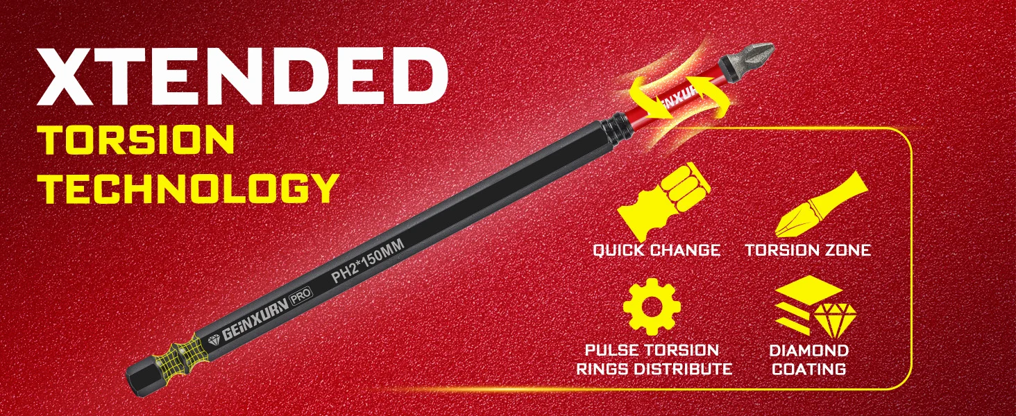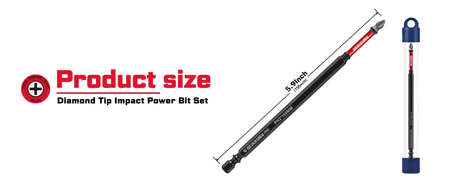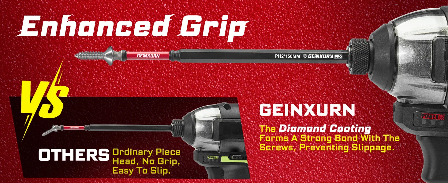 Diamond-coated screwdriver bit150mm Diamond tip Impact insert bit set Diamond is one of the hardest known materials, making these bits significantly more durable than regular steel bits.High Wear Resistance ideal for prolonged use,especially in high-torque tightening or loosening operationsImpact Shock Absorbent Zone stands up to impact drivers.lt can be handled a new generation of higher torque impact driversThe diamond coating bit tips rough surface increases friction with the screw head, reducing slippage.ldeal for prolonged use, especially in high-torque tightening or loosening operationsHigh-lntensity Applications: Such as industrial manufacturing or mechanical repairs, where frequent tightening or loosening of screws is require.Precision Work: Inelectronics or precision instrument repairs, diamond-coated bits provide better grip and minimize damage to screw headsPrimary Use Cases
