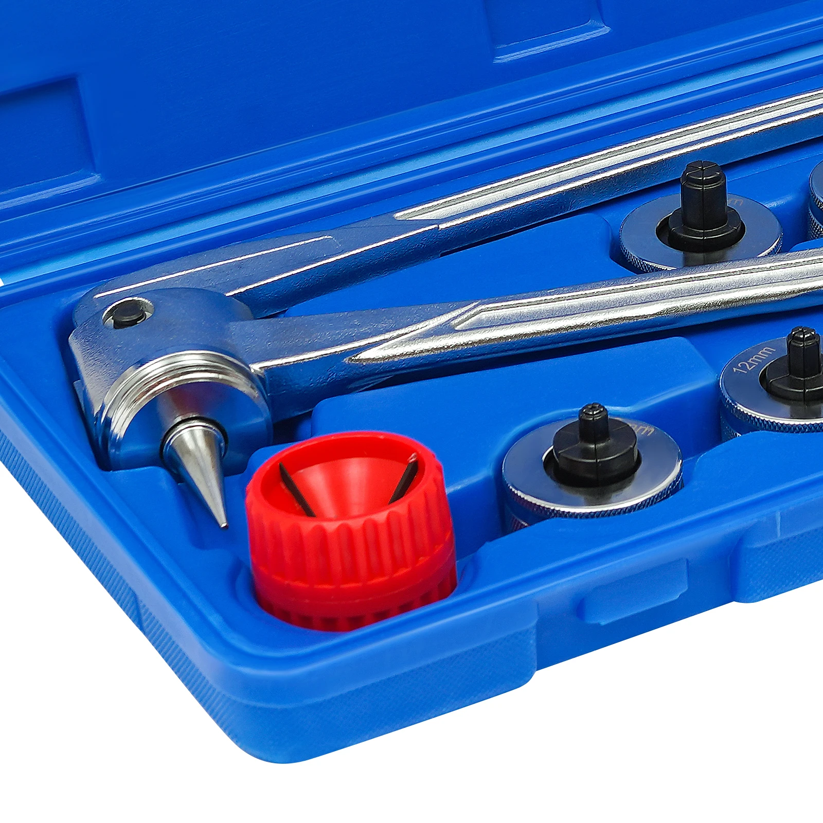 Complete Set: The kit includes 1 tubing expander body, 7 expander heads, 1 pipe cutter, 1 chamfering tool, 1 deburring reamer, and 1 thickened carrying case.