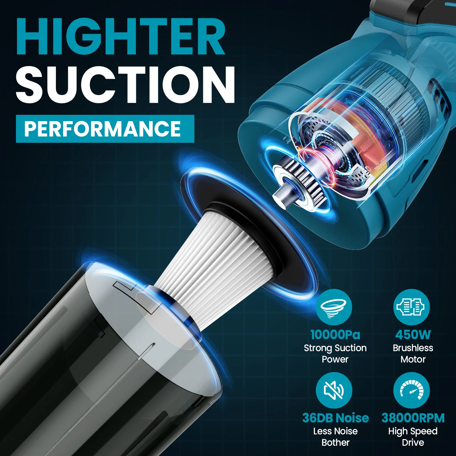 Turbocharged cleaning: Our vacuum clean have an efficient 450W brushless motor with a turbine blade design that transfers excellent sution. Say goodbye to stubborn dust and dust; This vacuum cleaner can handle all problems.
