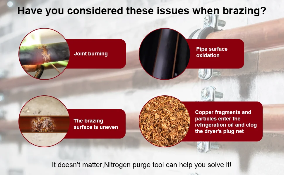 【Application】Designed for HVAC systems, this nitrogen regulator ensures smooth nitrogen flow for purging and brazing. It effectively removes refrigerants, moisture, and debris, prevents oxidation, and reduces equipment failure—keeping pipes clean and prolonging their service life.