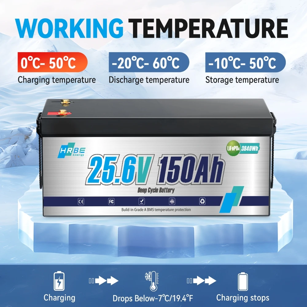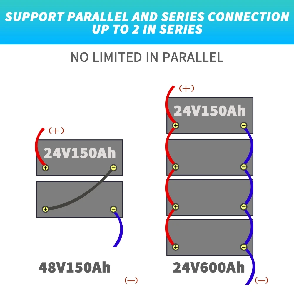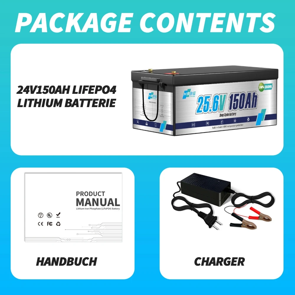 24V 150Ah 3.84kWh Deep Cycle LiFePO4 Battery with 100A BMS,Perfect in Solar/Energy Storage System,RV,Marine,Backup Power