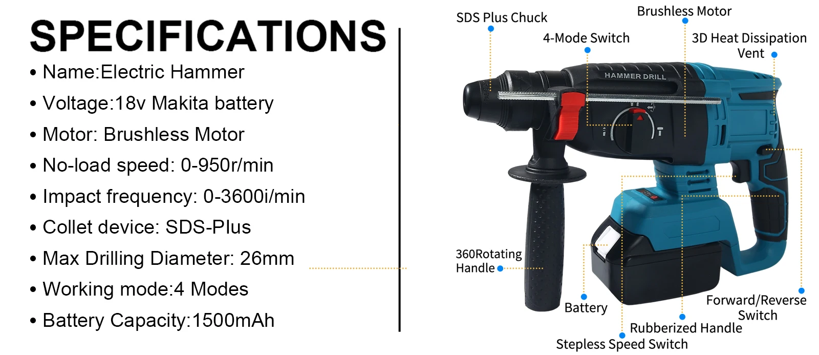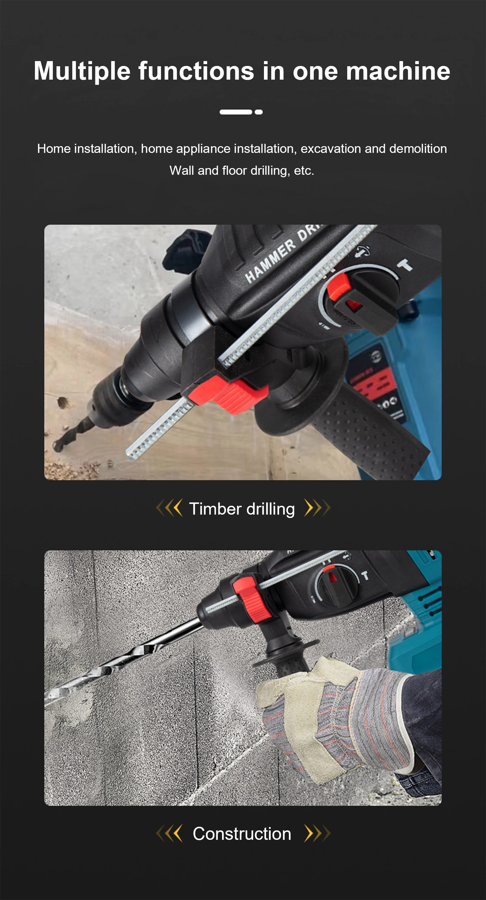 - Electric hammer mode:Higher drilling efficiency than AC electric hammer