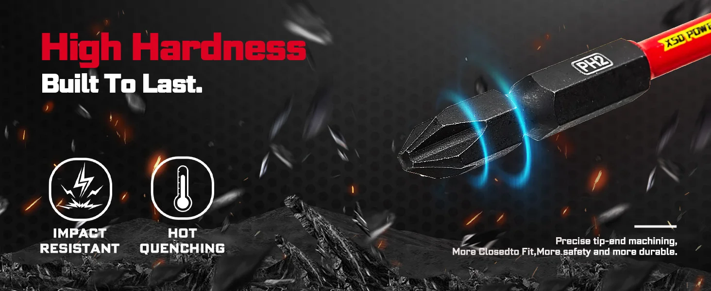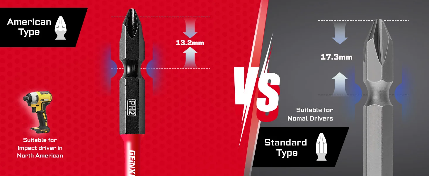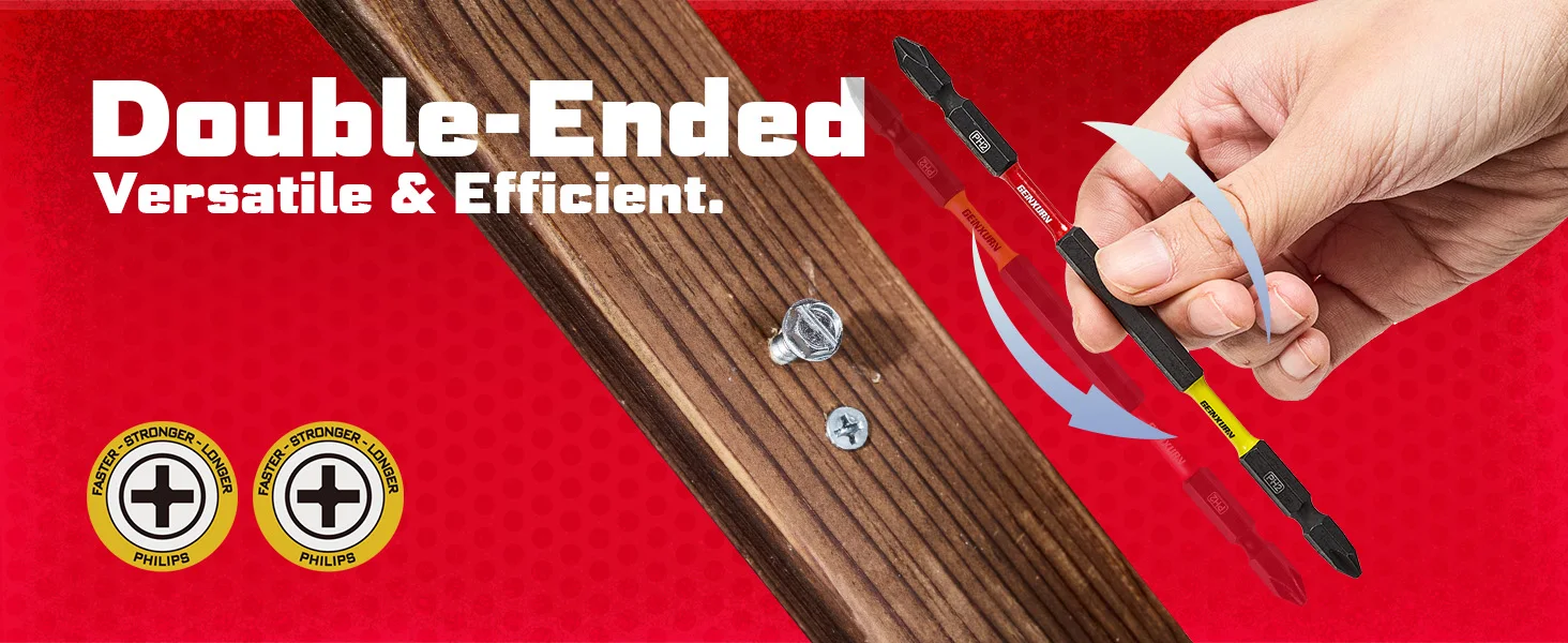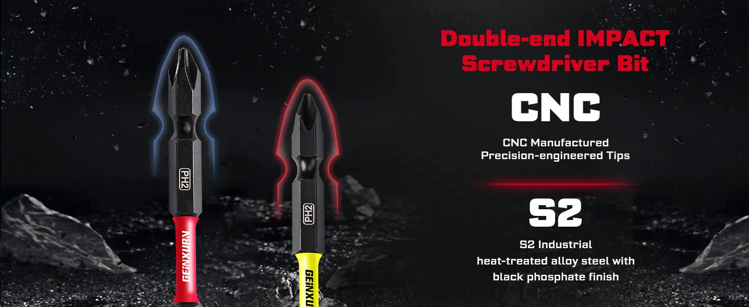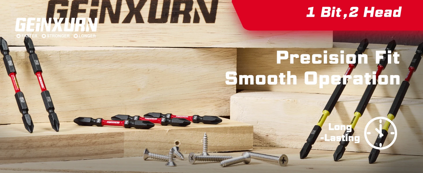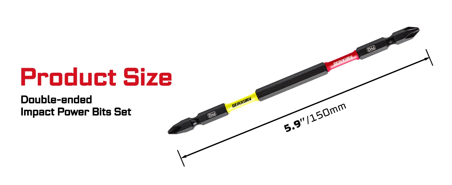 Geinxurn Impact Double End Screwdriver Bit Set 6 inches Standard PH2-PH2(Notice:Please make sure your driver chuck suit for use the double-end screwdriver bit.)Torsion zone absorbs the torque peaks of impact drivers to avoid breakageThis Bit owned strong magnetic to pick up and hold screws easily with no slipping or stripping Precise tip-end machining,More closed to Fit,More safety and more durableThis 2-sizes-in-1 head reversible screwdriver bit made of S2 high quality steel material, it owns the features of high hardness and good toughness and resistance through strictly heat treatment, durable and suitable for any industrial useDouble-Ended:Versatile & EfficientS2 Alloy Steel,It owns the features of high hardness and good toughness and resistance through strictly heat treatment, durable and suitable for any industrial useAmerican type bit heads are specifically designed to meet the standards and requirements of impact drivers commonly used in North America. These bits feature robust construction, precise engineering, and compatibility with popular screw typesA durable plastic case and plastic lid for easy viewing,easily take away with simple pushWidely use