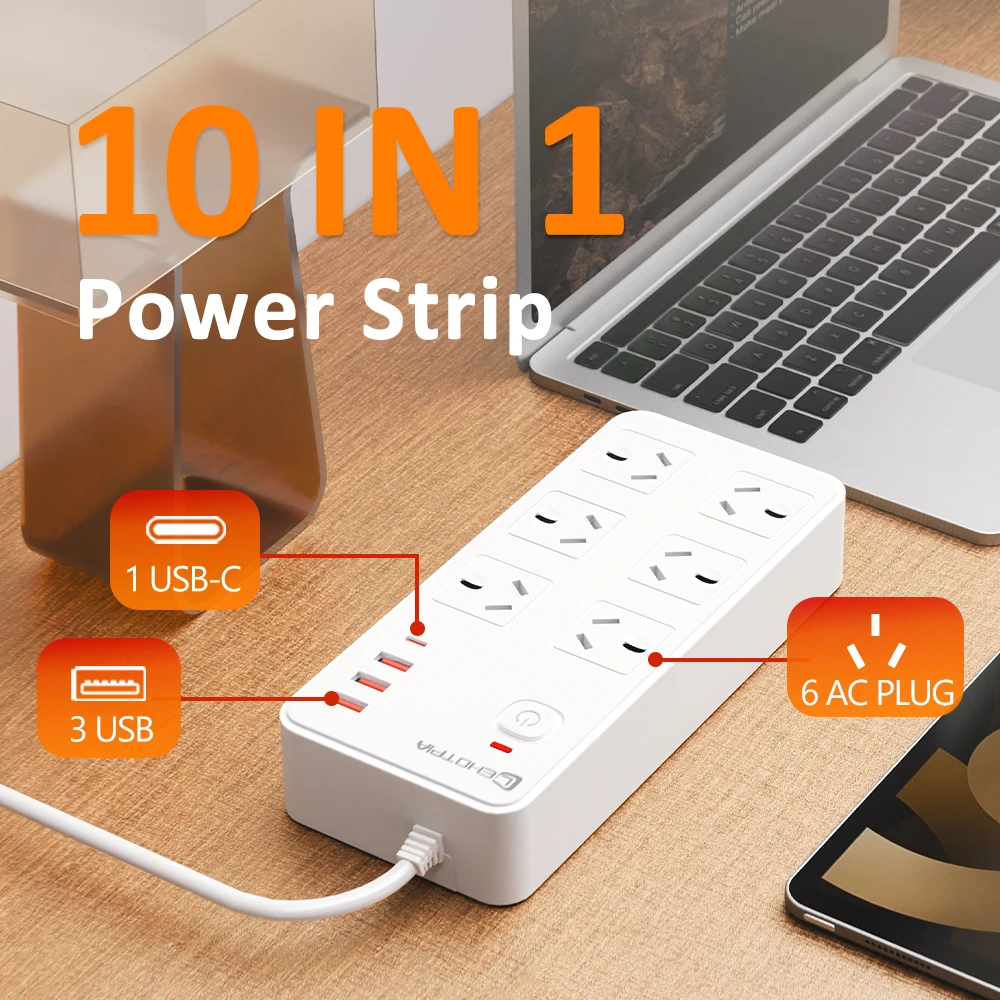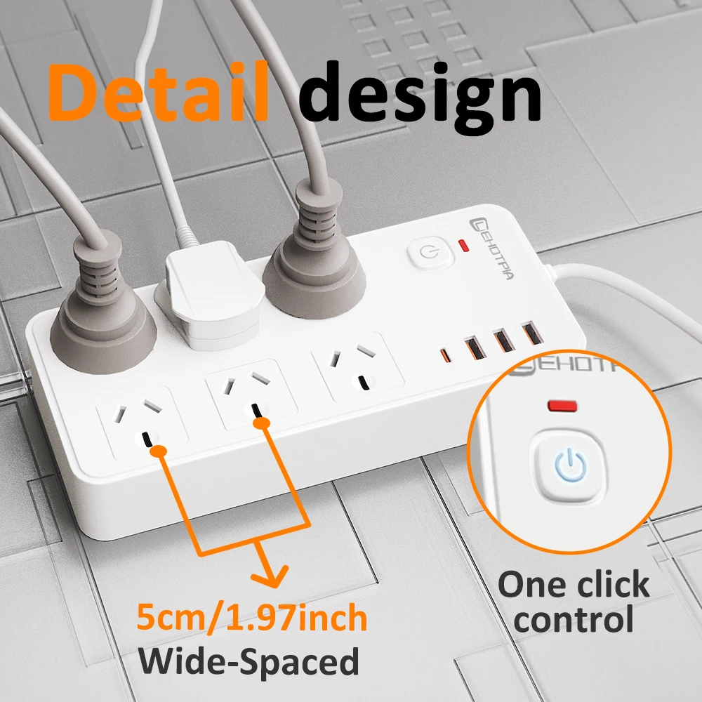 Power up multiple devices with ease using the Australia 1.8m Extension Cord Socket. This versatile power strip features 3 USB ports and 1 Type-C port for efficient charging. Say goodbye to cluttered outlets and keep your devices charged and ready to go. Perfect for home or office use, this power strip is a convenient and practical solution for all your charging needs.