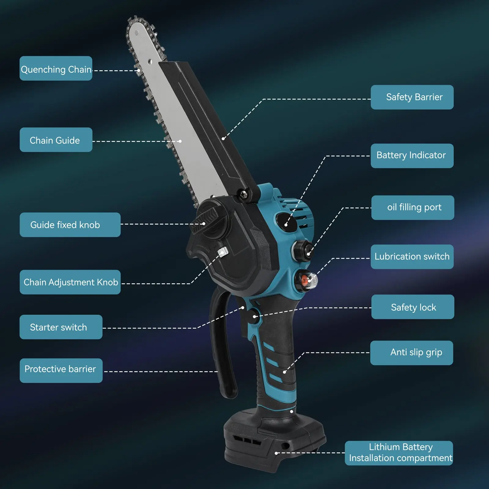 - Wide application: This electric chain saw has a wide range of applications and can be used to clear forests, cut wood, prune branches, etc.